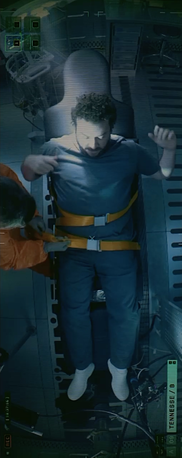 The Covenant crew is undergoing tests on the moon Phobos. The images that are shown for just an instant appear as part of the psychological tests given to the crew.