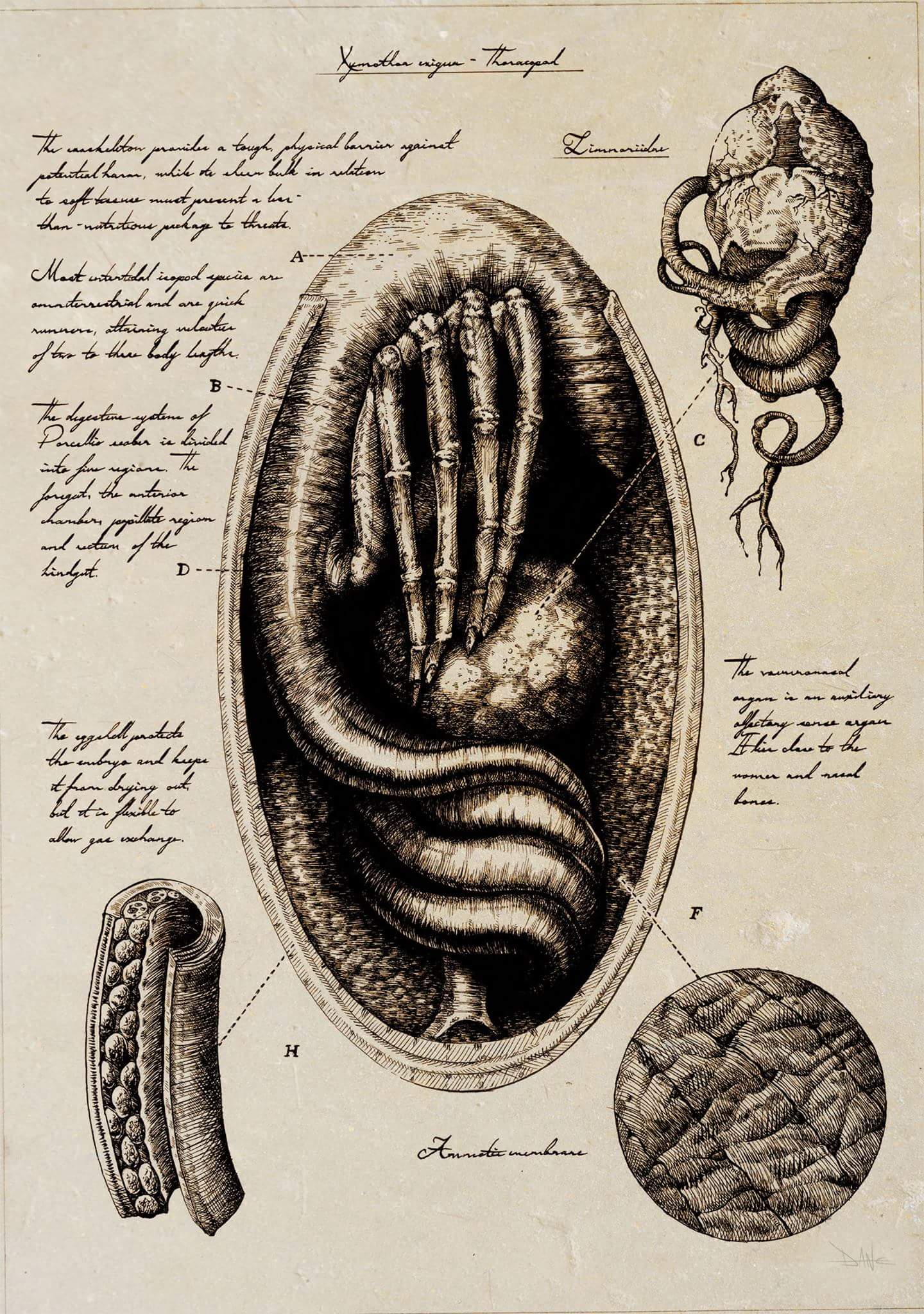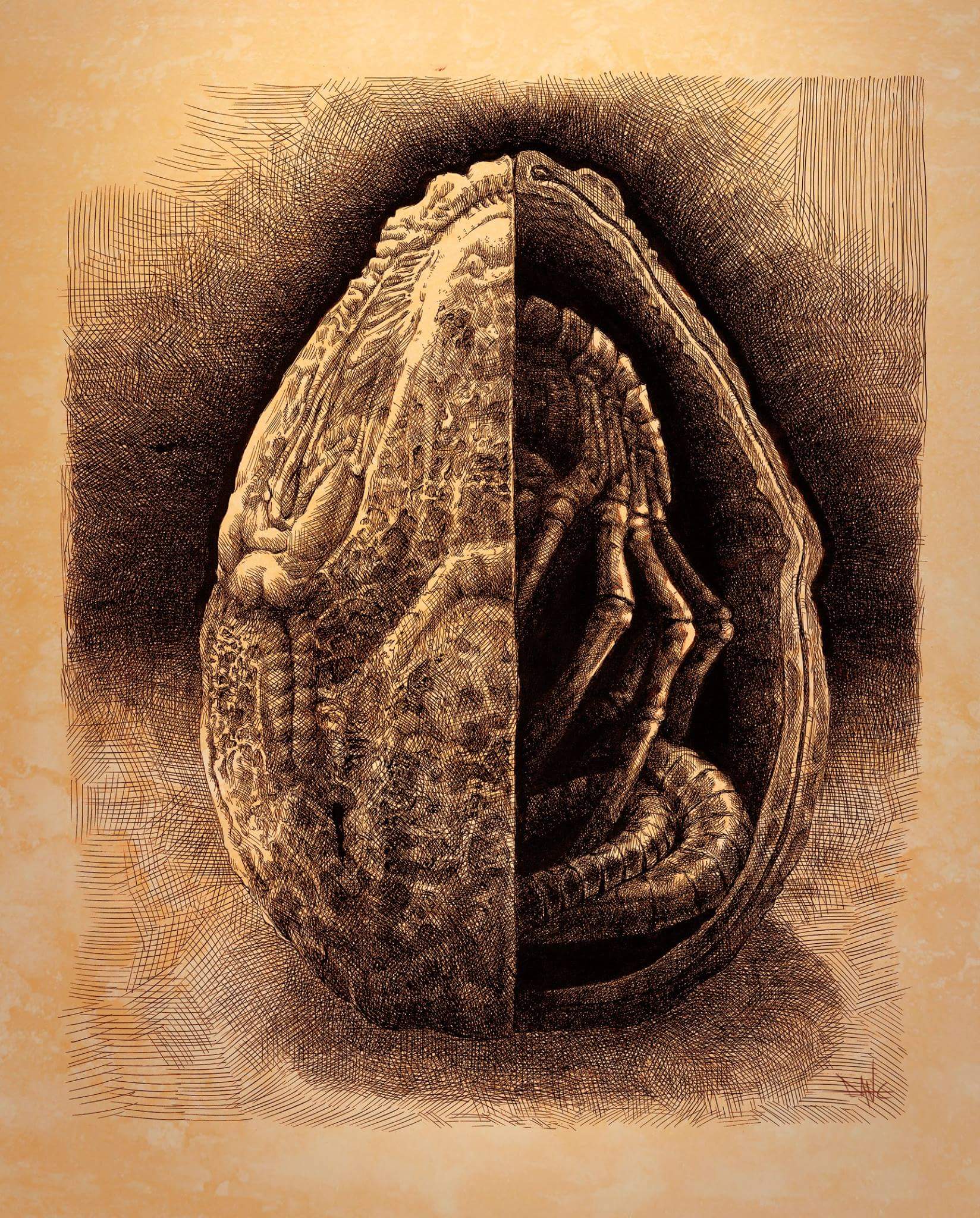 I'm hoping all of David's sketches will be legible so you can read all of the details and observations written on all of the sketches. A lot of it seems like it would explain, or try to explain a lot of the form and function we see in the eggs and facehuggers.