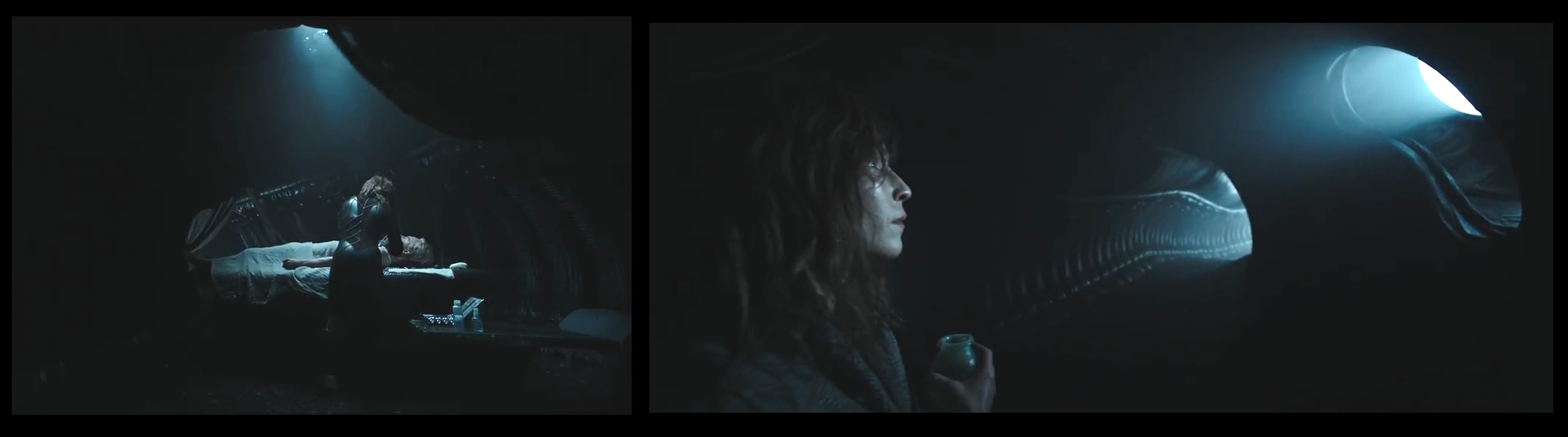 so only looking at the Ship and its relation to the Mural, the U shaped object that looks like the Derelict but also a Xenomorph is maybe showing us a Genetic Connection between the Xenomorph and the Derelict Ship.