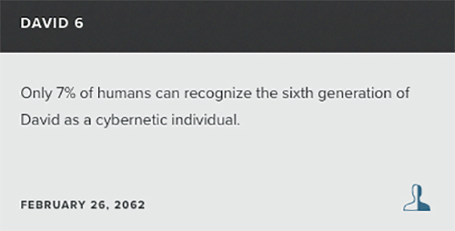 "He looks to be in his 60s or 70s in Covenant, so that means he was probably created around 2050-2070."