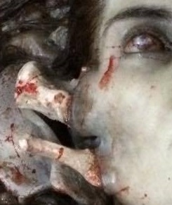 These bone-like things are very similar to the structures that can be seen on/around Shaw’s face in the movie still: