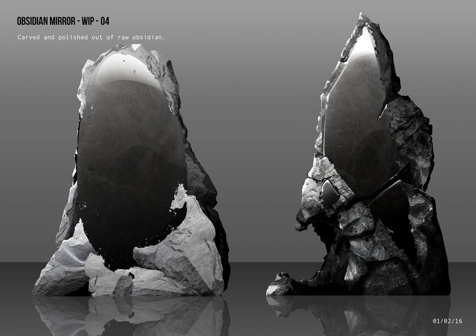 'Originally, water was to be running down some sections of the walls in Davids living quarters. Through one 'waterfall' we would see a 'polished obsidian mirror', in which David could be seen (naked from memory) brushing his teeth. This was to reveal the 'repair' seam around his neck, implying that Shaw had reattached his severed head. This was before it was decided that the prologue would cover that beat and as such, it was cut.'