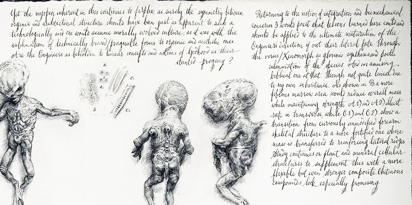 I can't help but notice the similarities in between the Engineer suit and aspects of the biomechanical xenomorph.