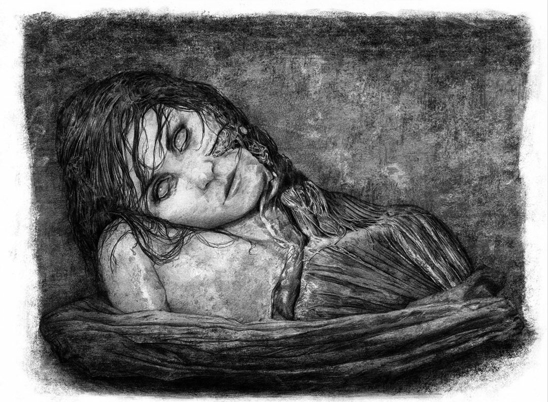 I don't really see how would David put Shaw together after ripping her jaw like that drawing depicts. For all, we know he used her organs for his experiments.