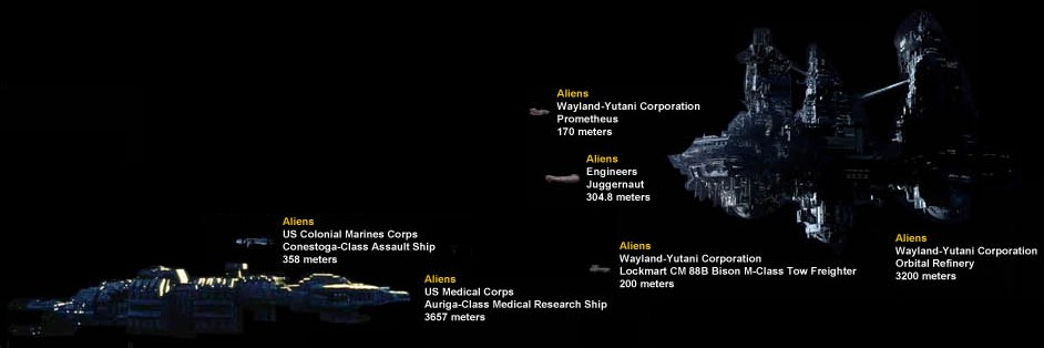 USCSS Prometheus: 130m (427ft) - 170m (560ft)