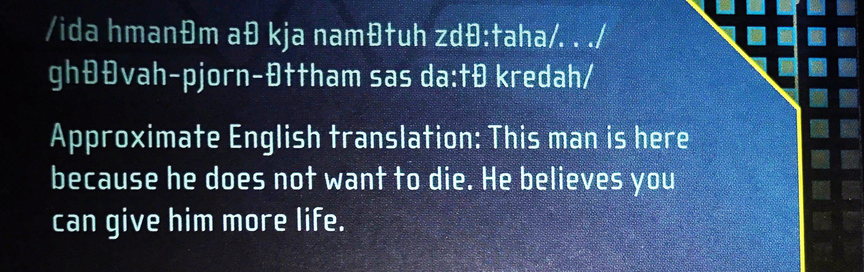 @ NonsenseBody - If you search this site, you will find translations of the Engineer & David's Prometheus conversation. I believe it was titled: The Engineer Speaks? I believe it was Sukal who deciphered it?