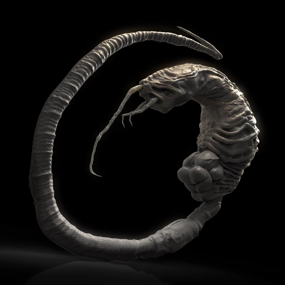 'Return of the little wormy dude! After our work on Alien:Covenant, @dane_hallett_art and I collaborated on a couple of things for the marketing. First an ambitious animated series of fully rendered frames of the egg, then a series of three slideshows/carousels of digital matte paintings depicting tiny but nasty denizens of the planet. Of those Dane and I tackled one each ourselves and collaborated on the last. Dane's shown his wheat field series. And here's my forest series. The forest turned out to be pretty ambitious but anyway it's a progression zooming in from the forest environment we see in the film to the macro level and little wormy Gigeresque dude. ___ the animation that was added wasn't quite what we intended or suggested, so here are just the still images. With some hidden critters and stuff along the way!'