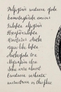 The missing words are not all there is, trilobites might not even (they seems to be classified as relatives to spiders) be crustaceans. And where did David learn ancient Earth biology and why? Logic be damned, it is cool so we keep it.