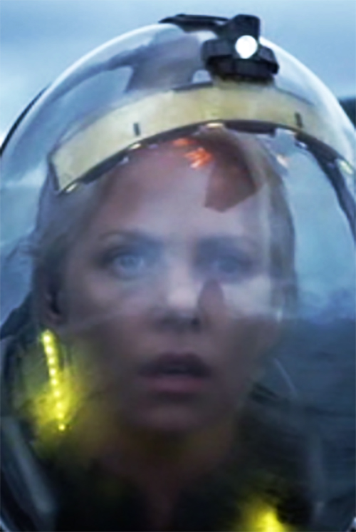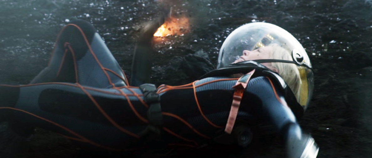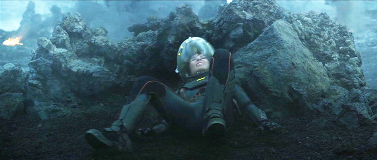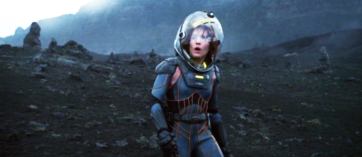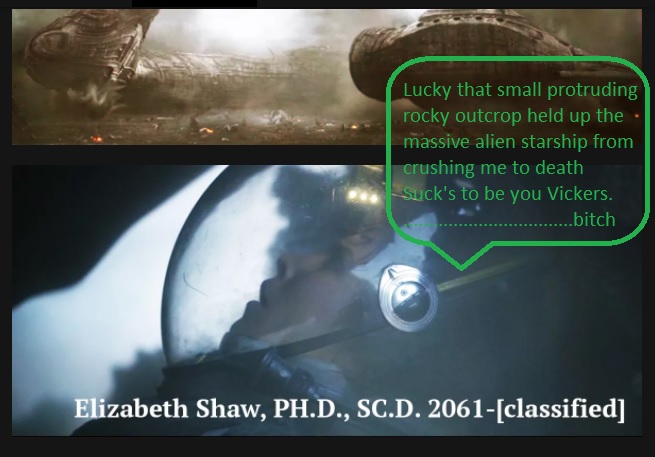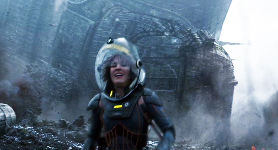 Dr. Shaw and Meredith Vickers watched as the Prometheus erupted in a magnificent explosion when colliding with the rising juggernaut on LV-223. The explosion reflection is visible on Vickers helmet (below).