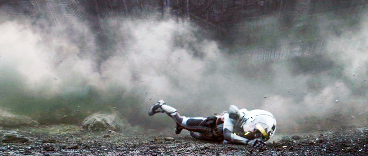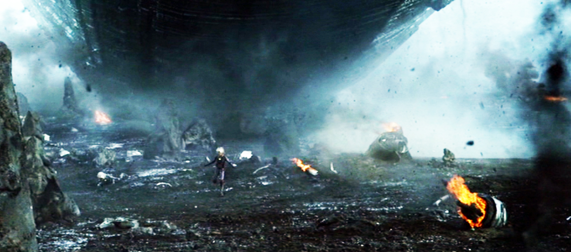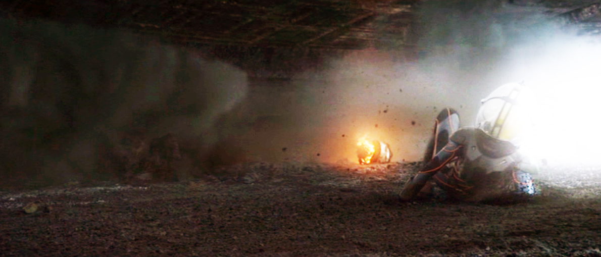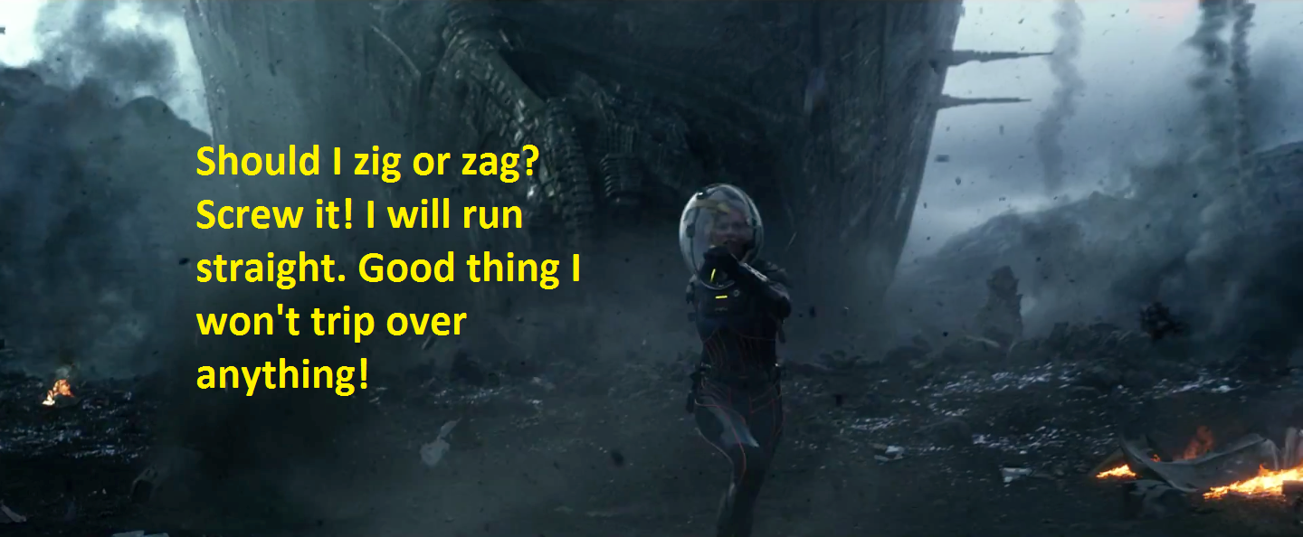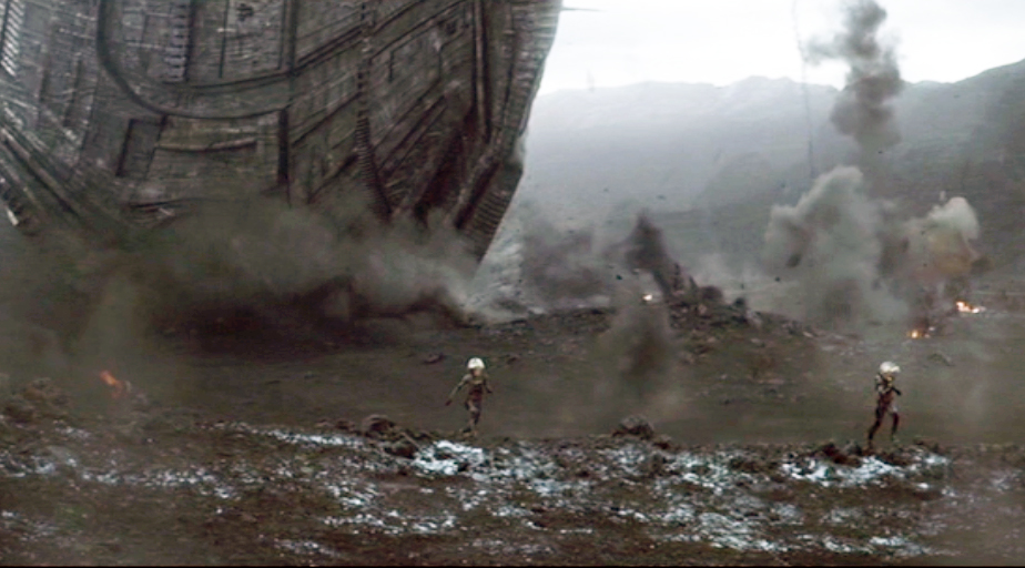 They quickly notice the falling juggernaut and try to save themselves by running away from where the Engineer craft appears to be falling toward.