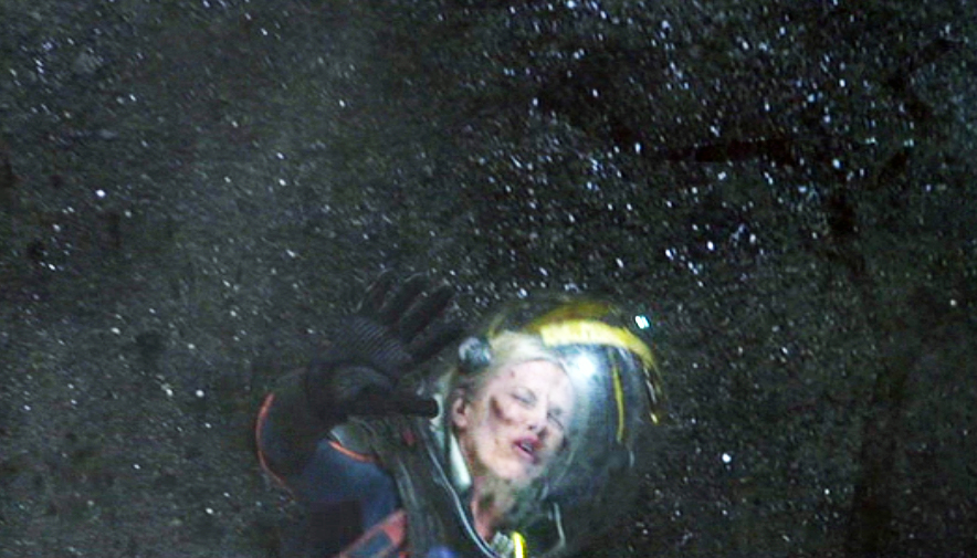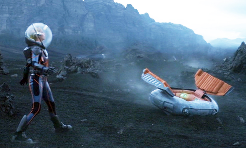 Dr. Shaw and Meredith Vickers split up on rough terrain and their respective paths produced much different results. Dr. Shaw falls and then rolls to safety while Vickers is soon crushed by the juggernaut.