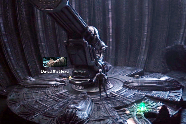 I love the shot of David's head Ati. Thank you. I couldn't find Weyland's body in the shot.