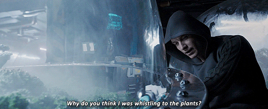 Loved this scene in both film and the novel and the way it comes full circle with Walter first getting to know David, "Whistle and I'll come.", and the novels interpretation of the first Xeno/Oram birth when David lulls the infant with a tune and the beast tries to imitate, establishing intelligence.