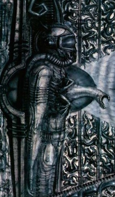 'The first version of Giger’s mural featured space explorer victims, with oxygen helmets…'
