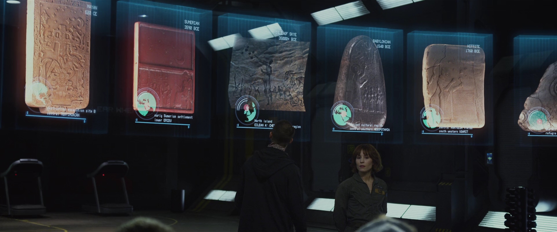 The Engineers did not create humankind, as to do so would be impossible given that they are themselves human. A bold statement, with no uncertainty; and here's why - The Engineers speak a proto Indo-European dialect and use a cuneiform hieroglyph writing system mirroring those used by the first human Indo-Europeans circa/pre 3,000 BCE. Humans of this period though mostly civilized were technologically primitive compared to modern humans, being as they were within the Neolithic/Bronze age of human technological development. With the exception of biomechanical technology (the Juggernauts and augmentation of the pilot Engineers), it would appear that the Engineers have not advanced past this point in human technological development, as evidenced by the flute used to activate the Juggernaut and the masonry, attire, and technology of the Engineers seen on Paradise and in Prometheus' opening scene. The genetic evidence gathered by Dr. Elizabeth Shaw and crewmate Ford (pictured above), which showed that Engineer DNA is a match to, but predates our own, together with the dating of the Sumerian tablet, the oldest artifact discovered by Shaw and Dr. Charlie Holloway (pictured below), would seem to suggest that the Engineers are in fact ancient Neolithic-age humans taken from Earth prior to the Sumerian tablets creation in 3590 BCE.