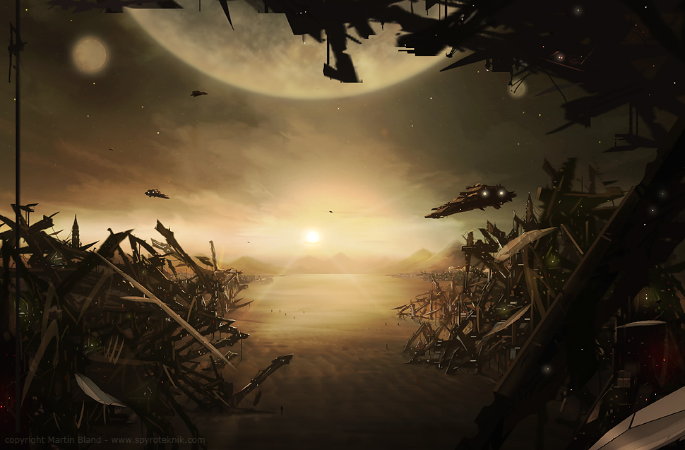 'The UK based illustrator and digital artist Martin Bland also known as Spyroteknik has created some astonishing artworks for books, publishing and album covers. We have a selection of Martin Bland’s stylish and atmospheric science fiction and fantasy themed creations below. You can see more of Martin’s work on his website – www.spyroteknik.com, DA and on Facebook.'