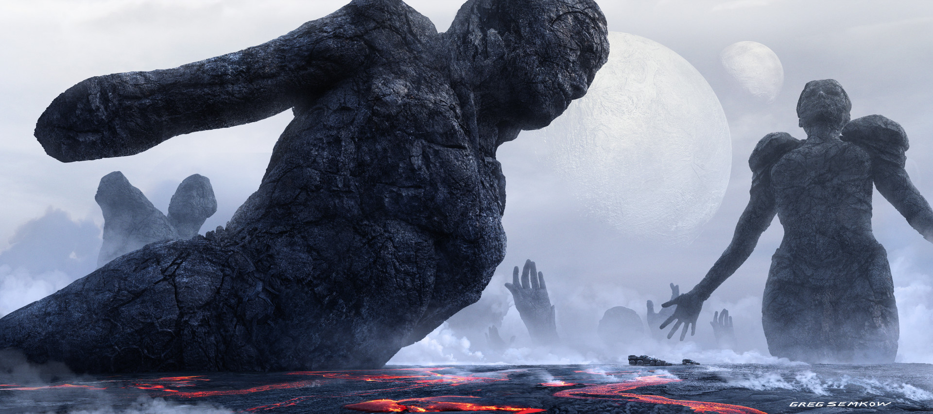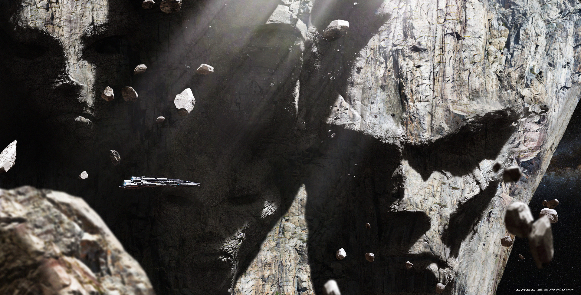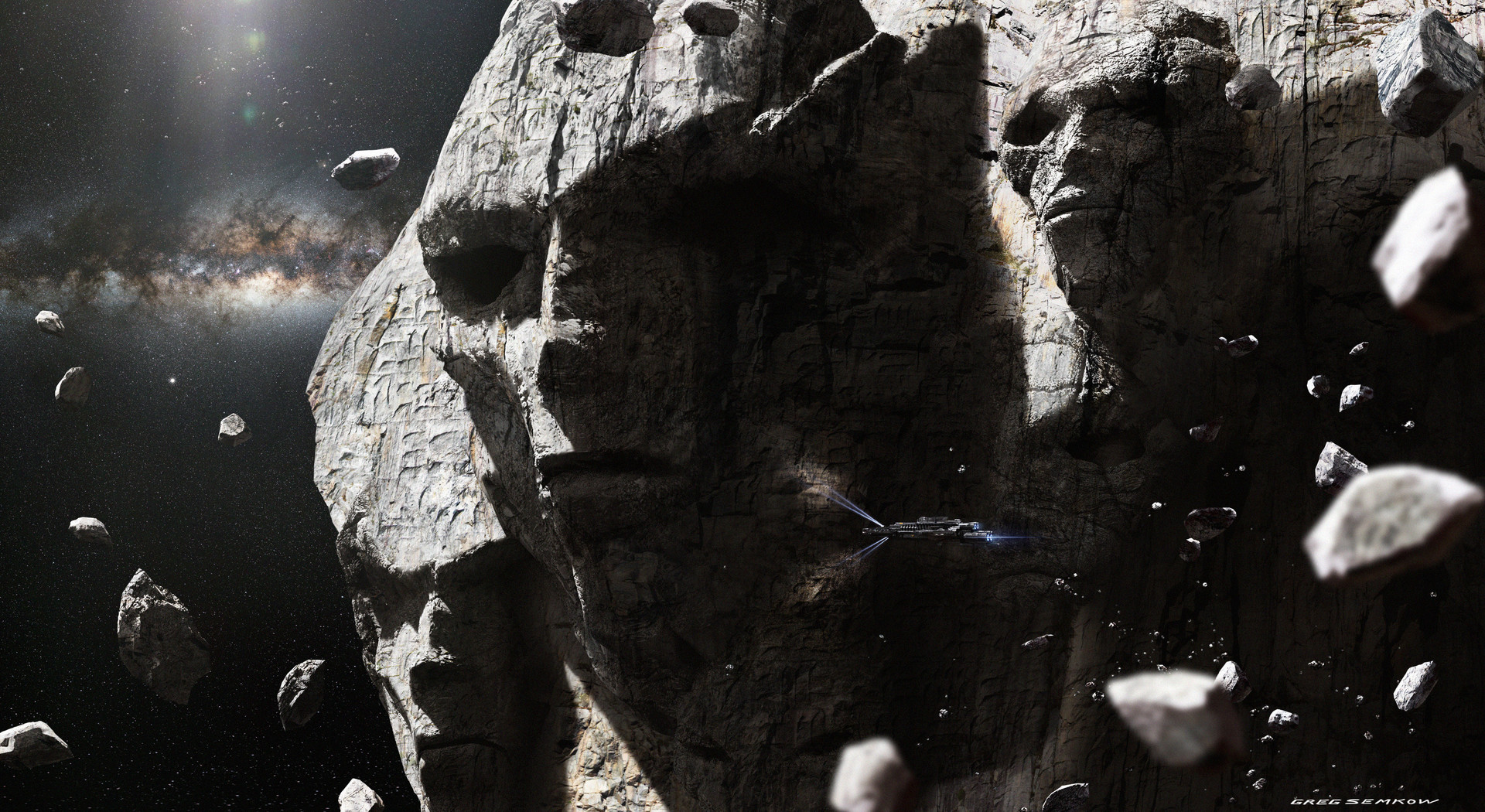 A brilliant idea for the Alien Covenant sequel: Engineer faces carved in giant space rocks - in artworks created by Greg Semkow.
