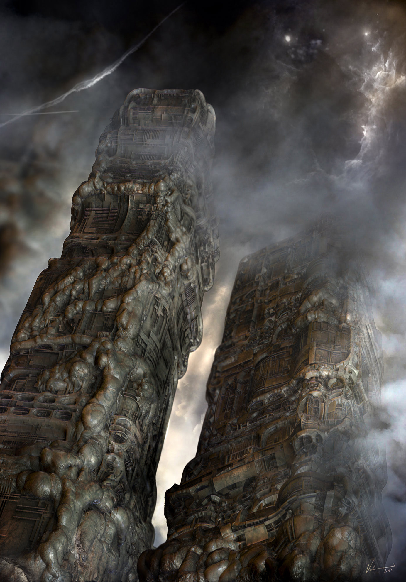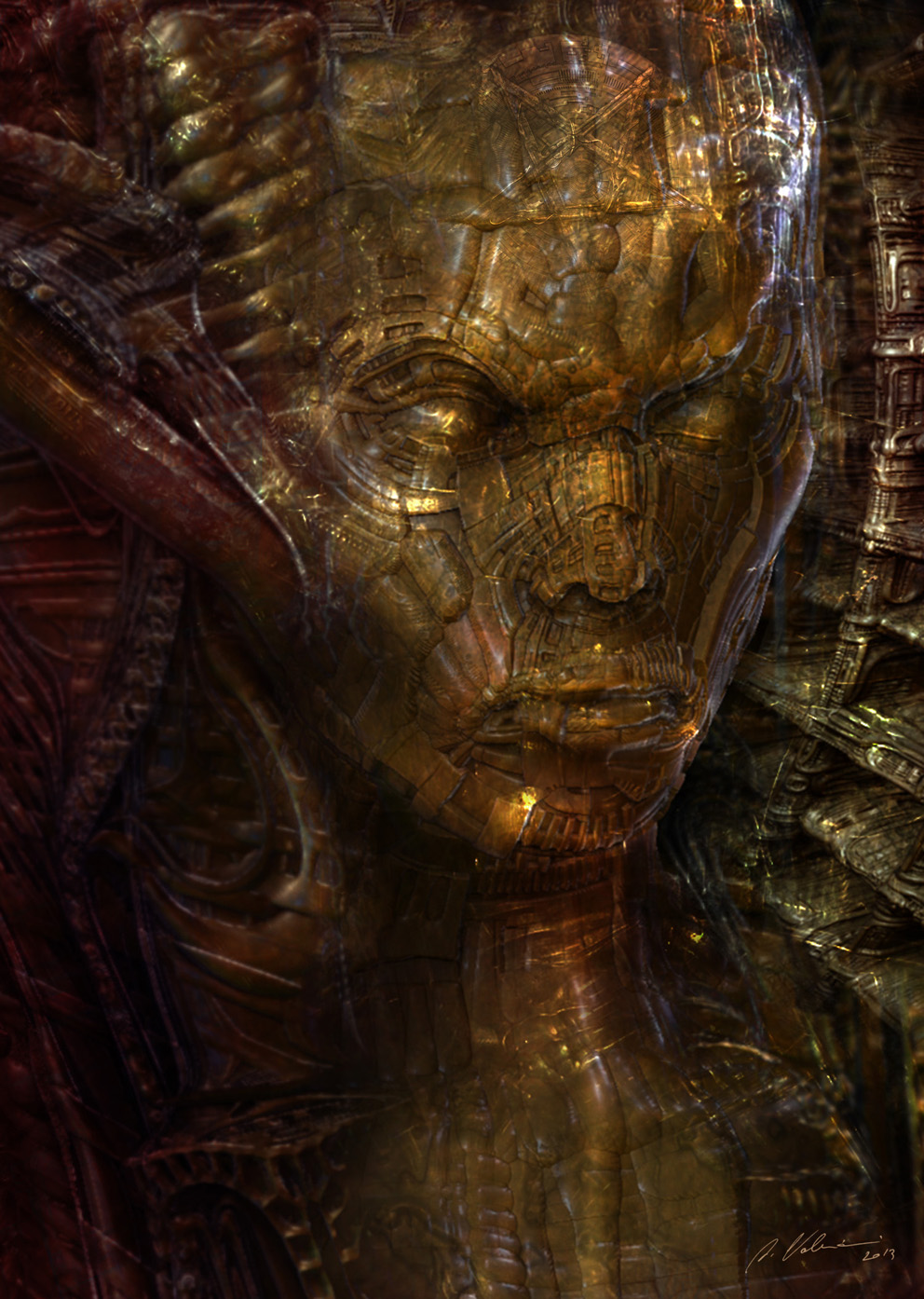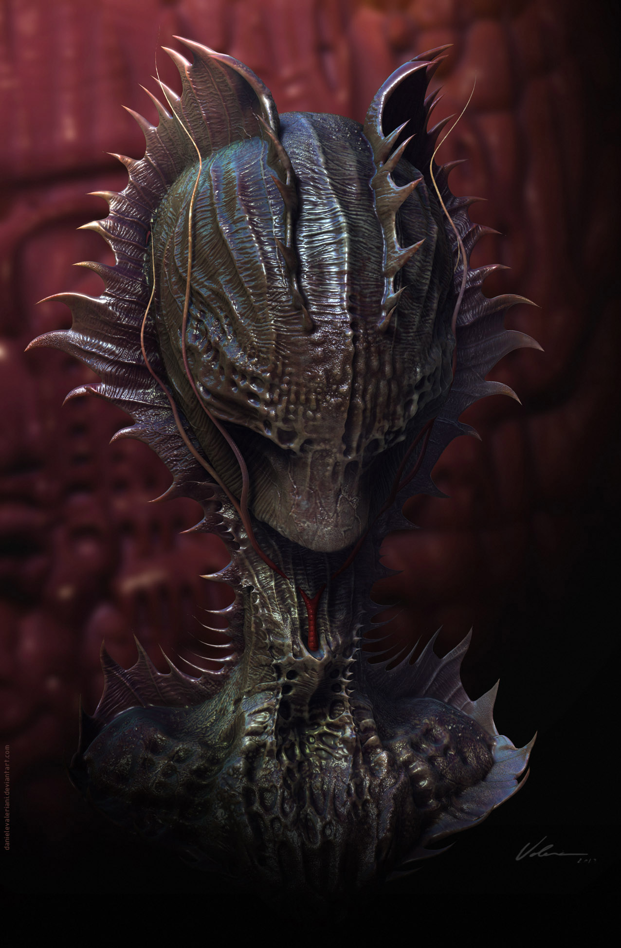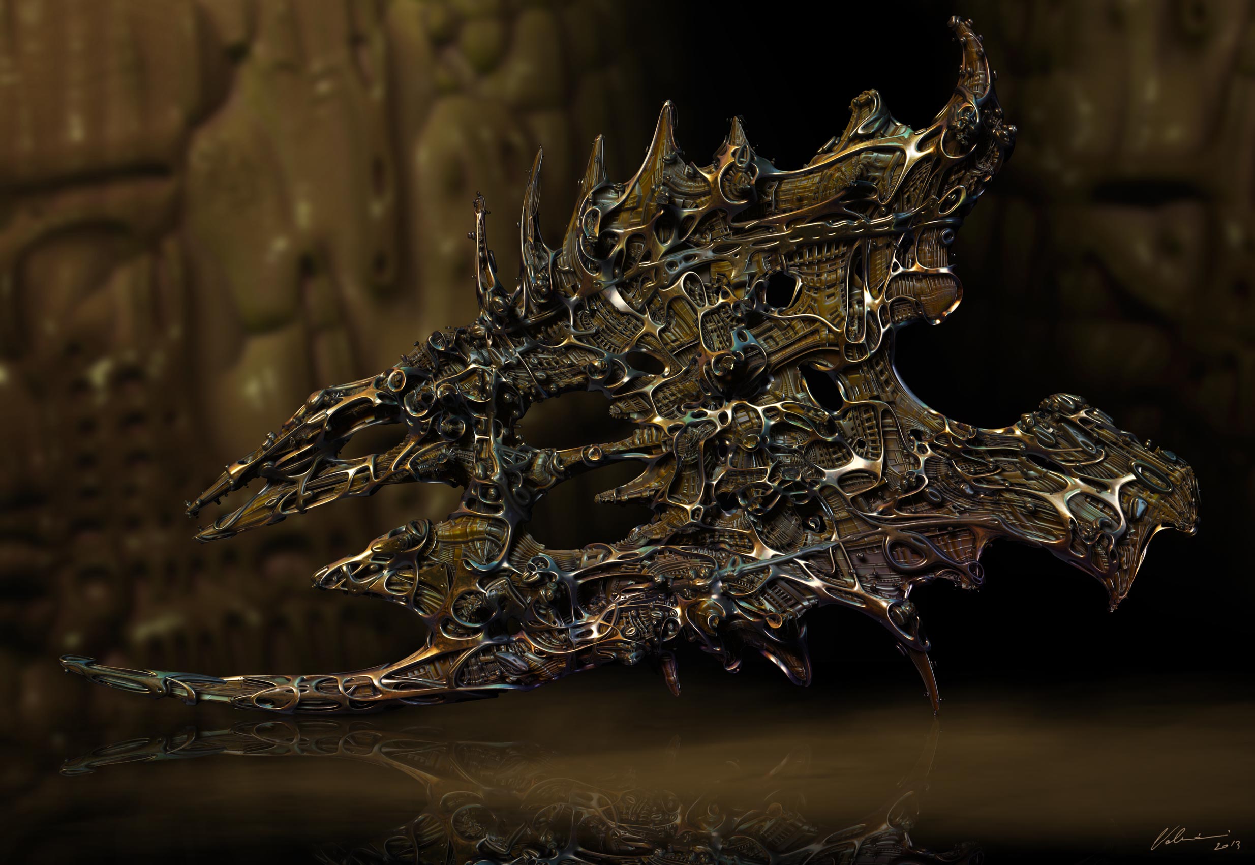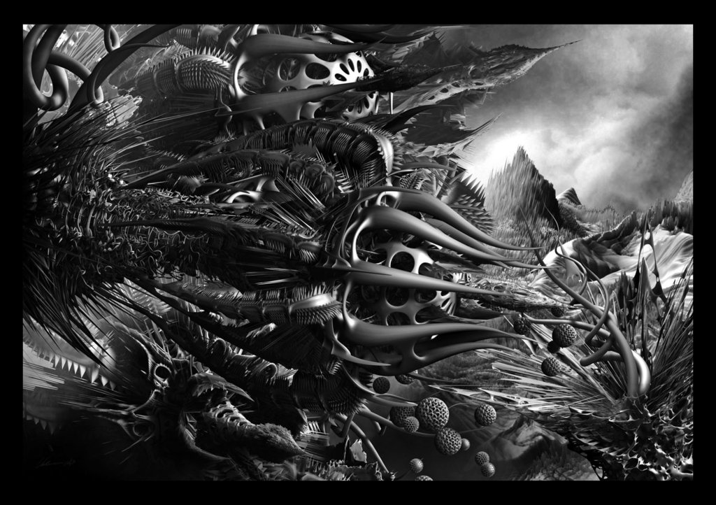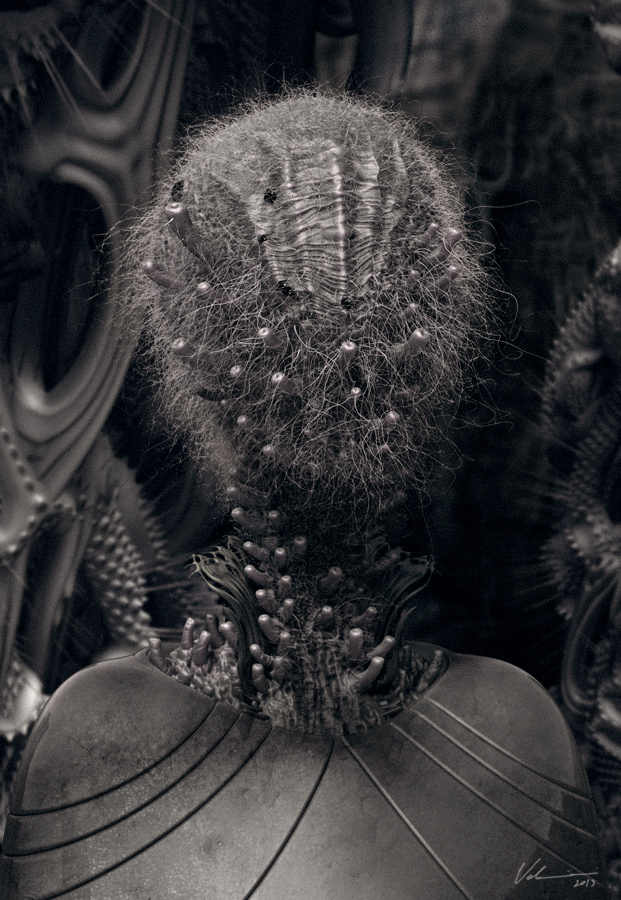 'Inspired by the legendary work of H.R.Giger, Daniele Valeriani explores similar science fiction, fantasy and horror themes to create these dark, beautiful and complex studies and structures.'