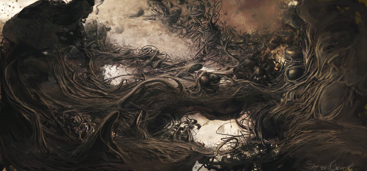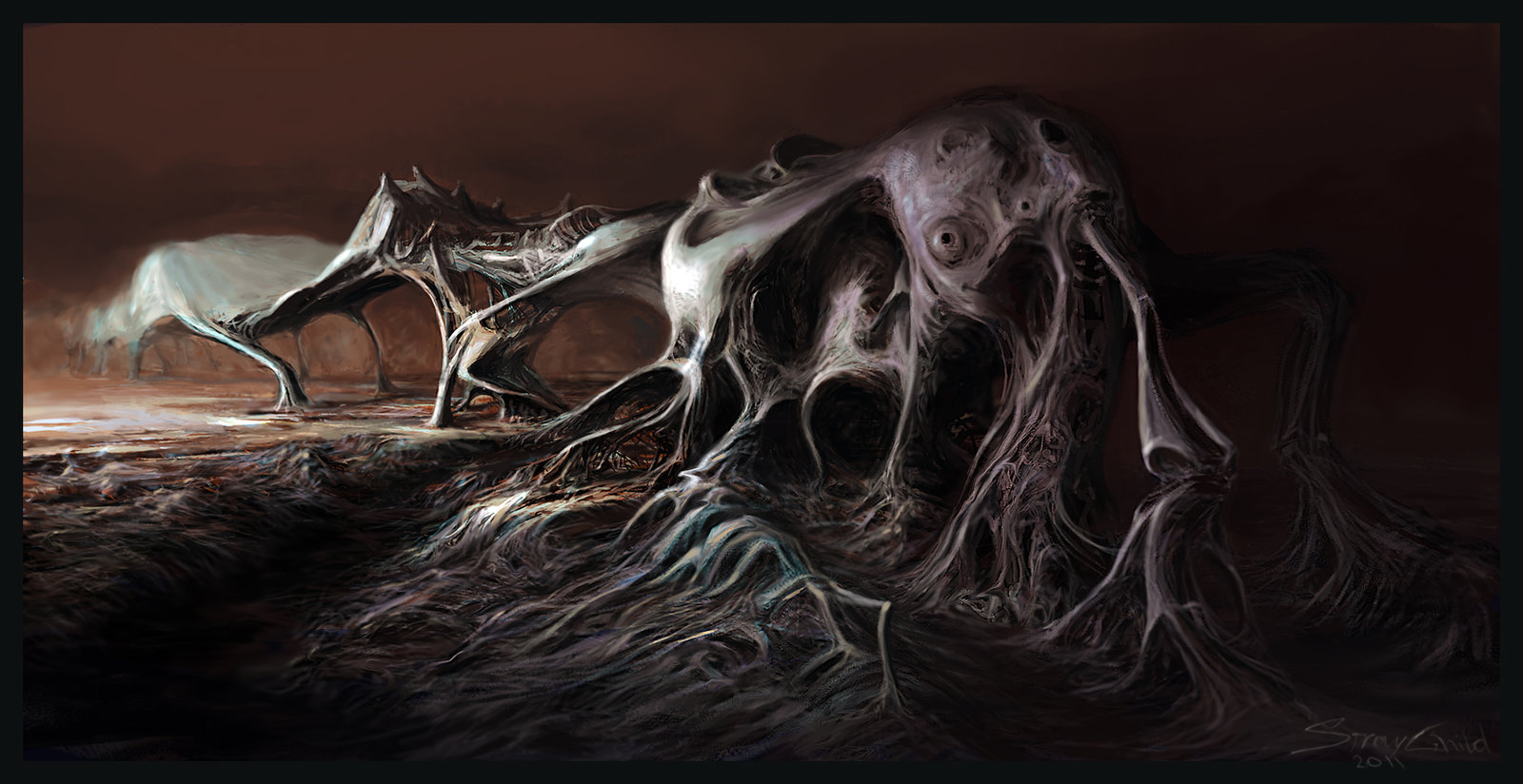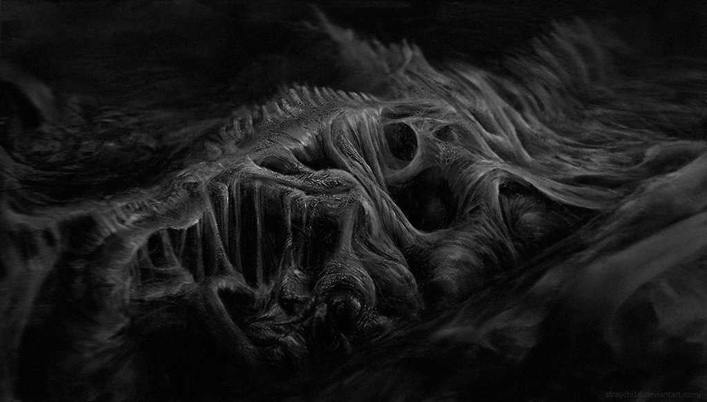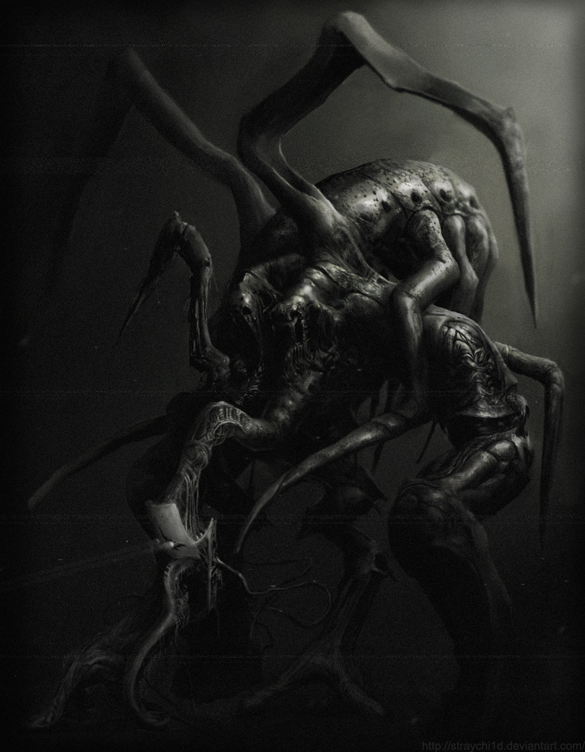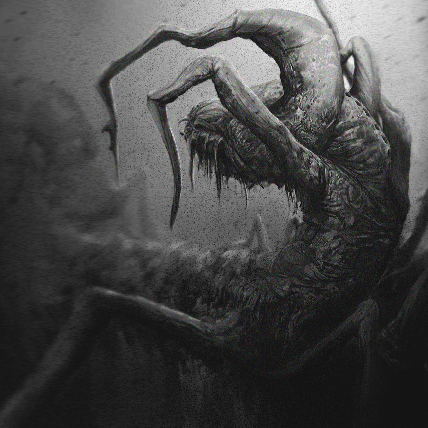 'The Russian artist Stray Child creates dark, disturbing and strangely beautiful images. These are wonderfully macabre and grotesque creations leaving the viewer to wonder if these insect like creatures, aliens and lifeforms are dead and decaying or if they’re very much alive and transforming into something else entirely!'
