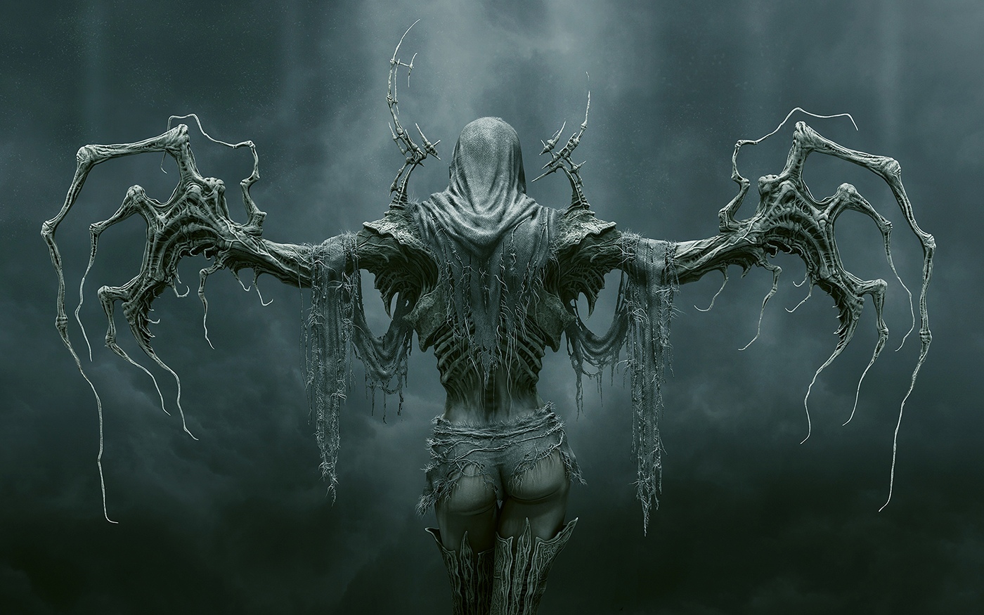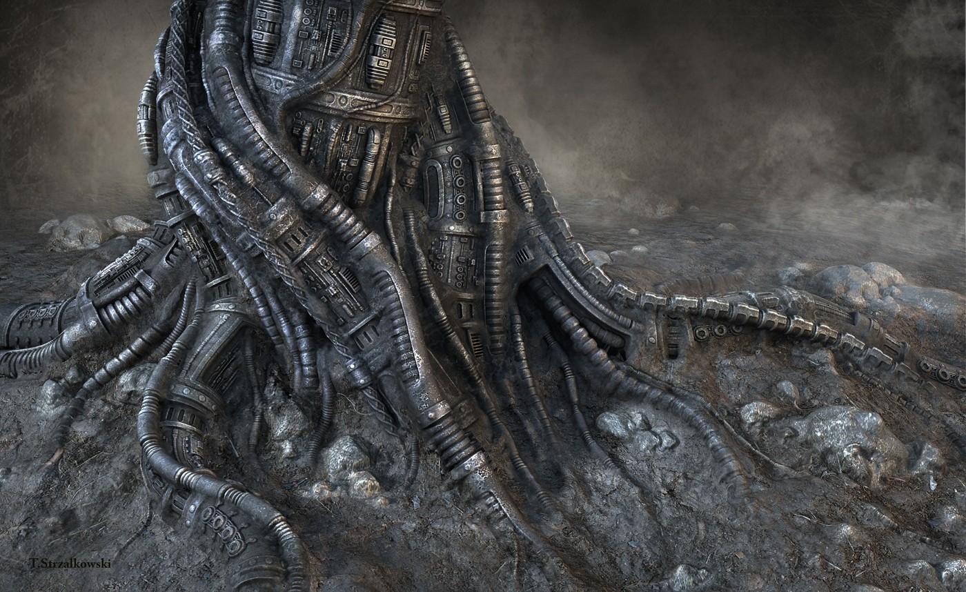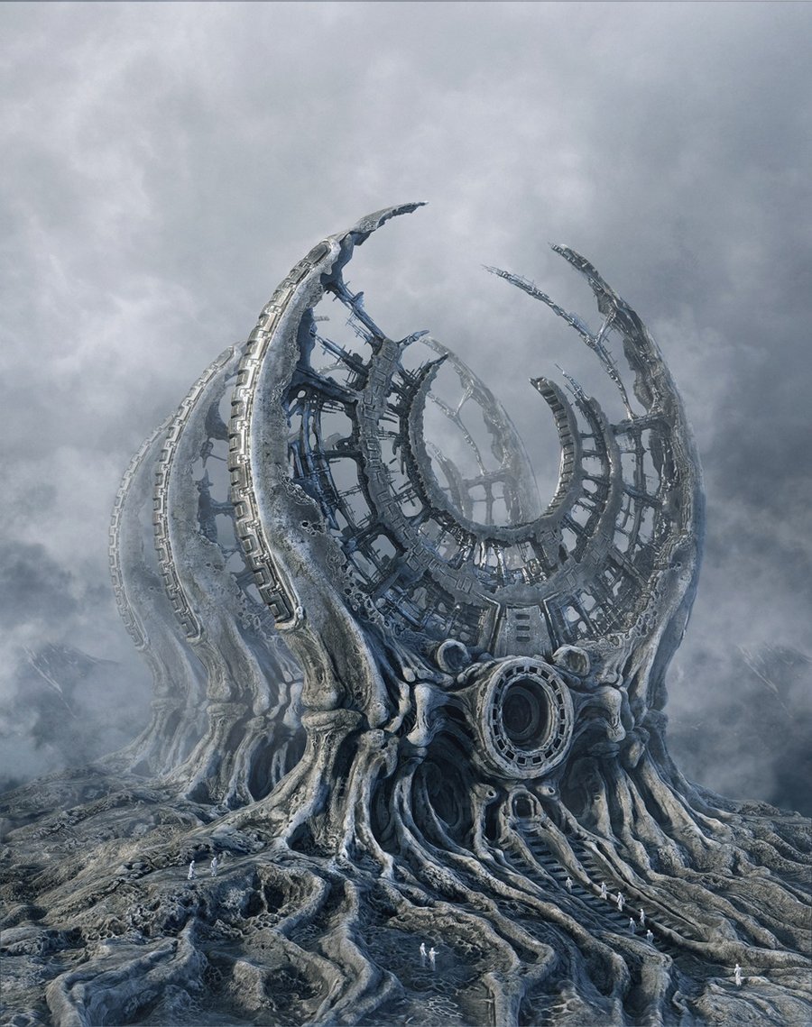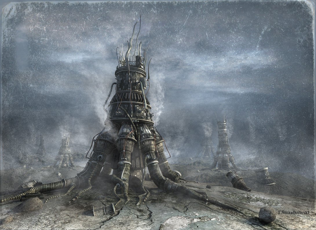 'Tomasz Strzalkowski is a professional digital artist based in Poland. His fantasy and sci-fi themed creations have a dreamlike quality, transporting us to a surreal world where skeletal figures, bio mechanical trees and structures climb high into the sky.'