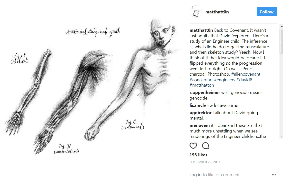 Hatton: 'It wasn't just adults that David 'explored'. Here's a study of an Engineer child. The inference is, what did he do to get the musculature and then skeleton study? Yeesh!...'