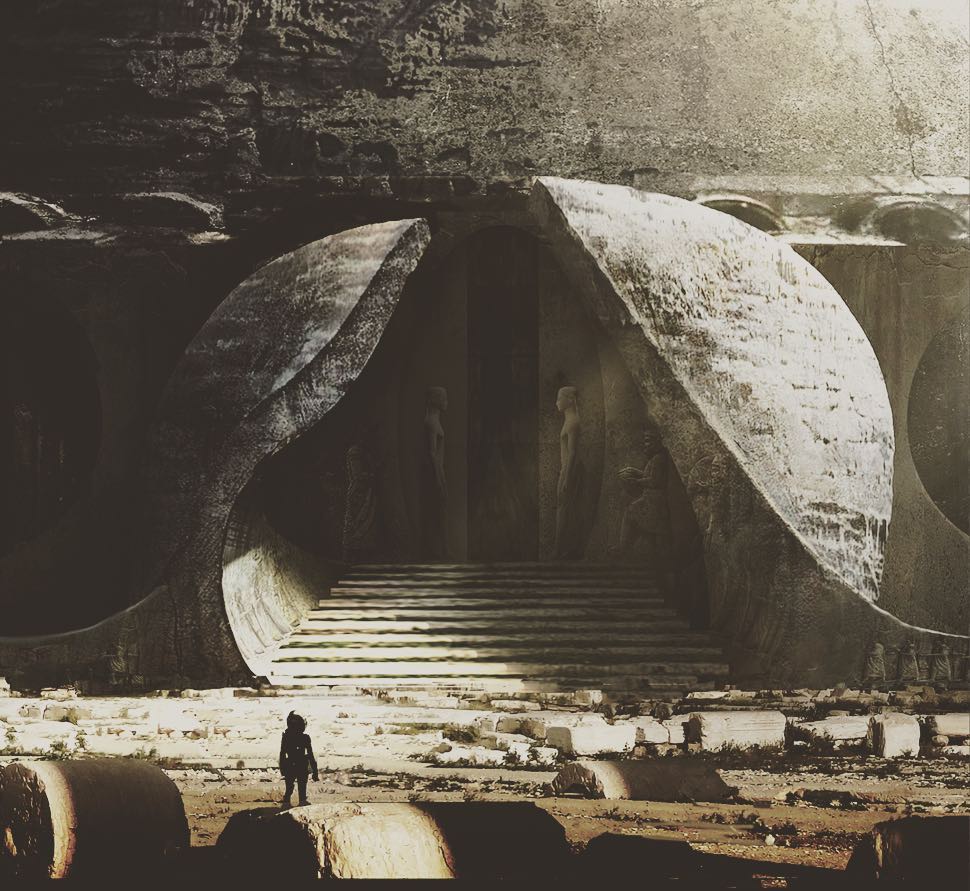 Was there a reason that by Coincidence TWO separate Concept Artist have Females on the Doors, and the entrance we see Humanoids? One piece who look more Greek/Roman the other Sumerian? These dont look Engineers at all..... and while the Cathedral does not look like this in the Movie, we have to wonder at some point WHY Haagg and Messing designed the concepts this way?