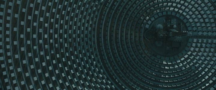 Still from Blade Runner 2049 - probably a spaceship in the sky which is similar to the Sulaco in Aliens: