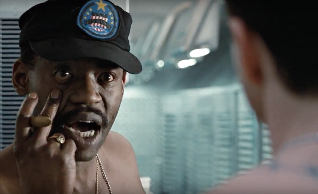 Todd's weapons training record lists the "USMC Smartgun" and "M41A pulse rifle" – these are references to Aliens (1986). Among the garbage on the planet is the U.S.S. Franklin Delano Roosevelt, the F-117X Remora from Executive Decision (1996), a spinner from Blade Runner (1982), and a piece of the Lewis & Clark from Event Horizon (1997).
