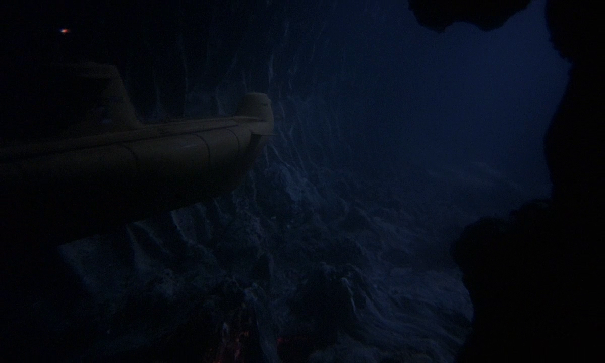 Finding the alien ship 35 miles below the surface...the crew use small vessels and drones to bring black goo canisters and crystals aboard the Antar.(The depth of the ocean has crushed much of the valuable cargo.)