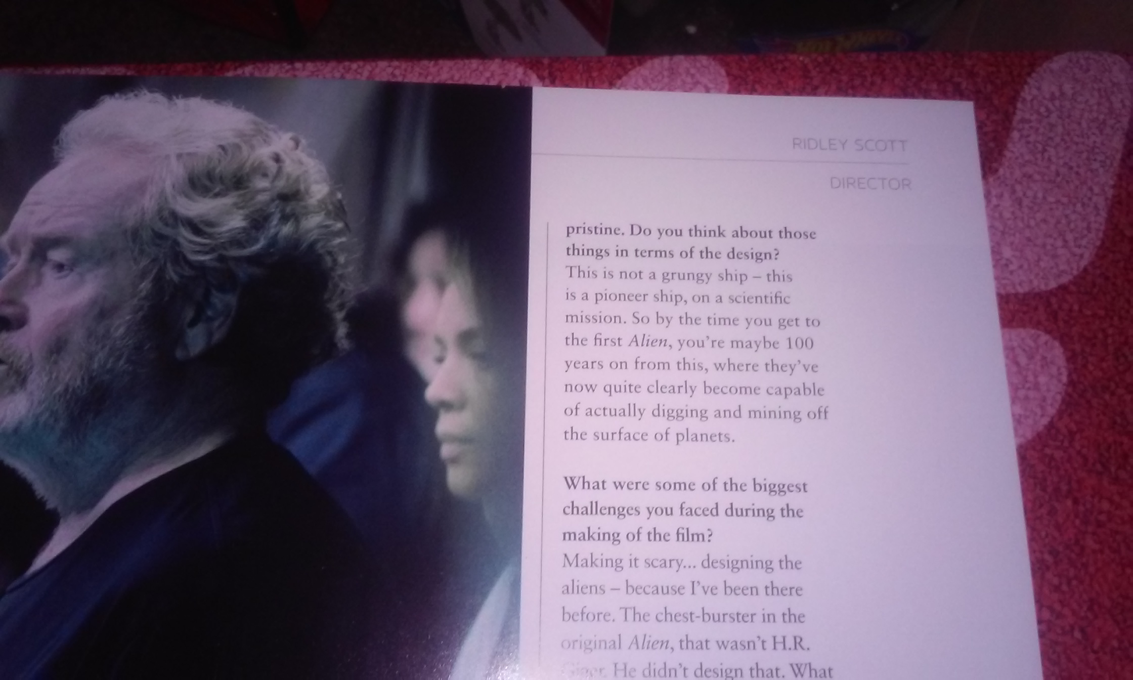 Last summer i bought the Alien Covenant collectors guide to the film which contains various interviews with cast and crew,behind the scenes info etc.I was just recently reading through the interview with Ridley Scott and he was asked a question regarding the difference in technology between the Covenant and the Nostromo.He says and i quote