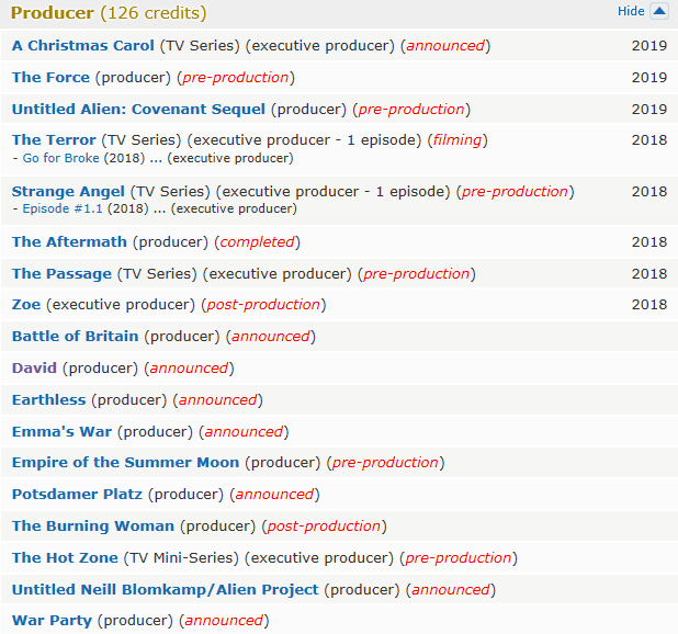 I'm not kicking sand on anyone's analysis above. It is just hard for me to believe Ridley Scott is operating under diminished capacity when he is offered so much from so many. After speaking with investors/production companies, you might think that with a declining film backlog but so many want him to direct films and are ready to fund it.