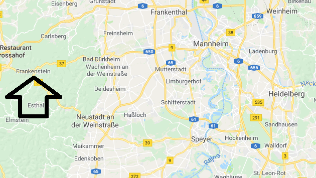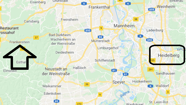 'Frankenstein. It's a small town in the mountains west of Heidelberg.'"