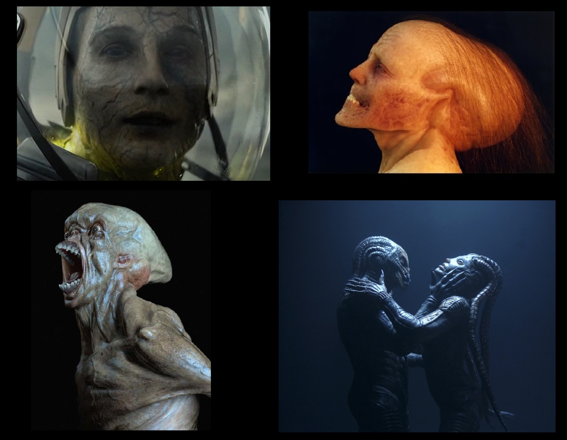 Stages where her Skin Becomes Grey, her Eyes Turn Black, then latter her Head becomes Elongated, other minor changes to Body Proportions before she becomes more of a Hybrid, maybe closer to the 3rd Image Below, maybe even incorporating some Bio-Mechanical Features from the 4th Image. Or even Turn out like some of the Dr Shaw Concepts from Alien Covenant.