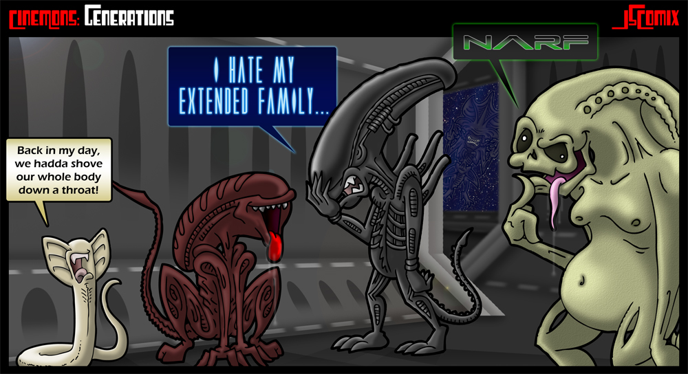 ...AND FINALLY, TO TIE THE WHOLE THING INTO THE BACK, REVERSE, REAR END OF ALIEN, WE'LL SEE JONESY BIRTHED FROM THE MOTHER-FREAKIN' SPACE JOCKEY!