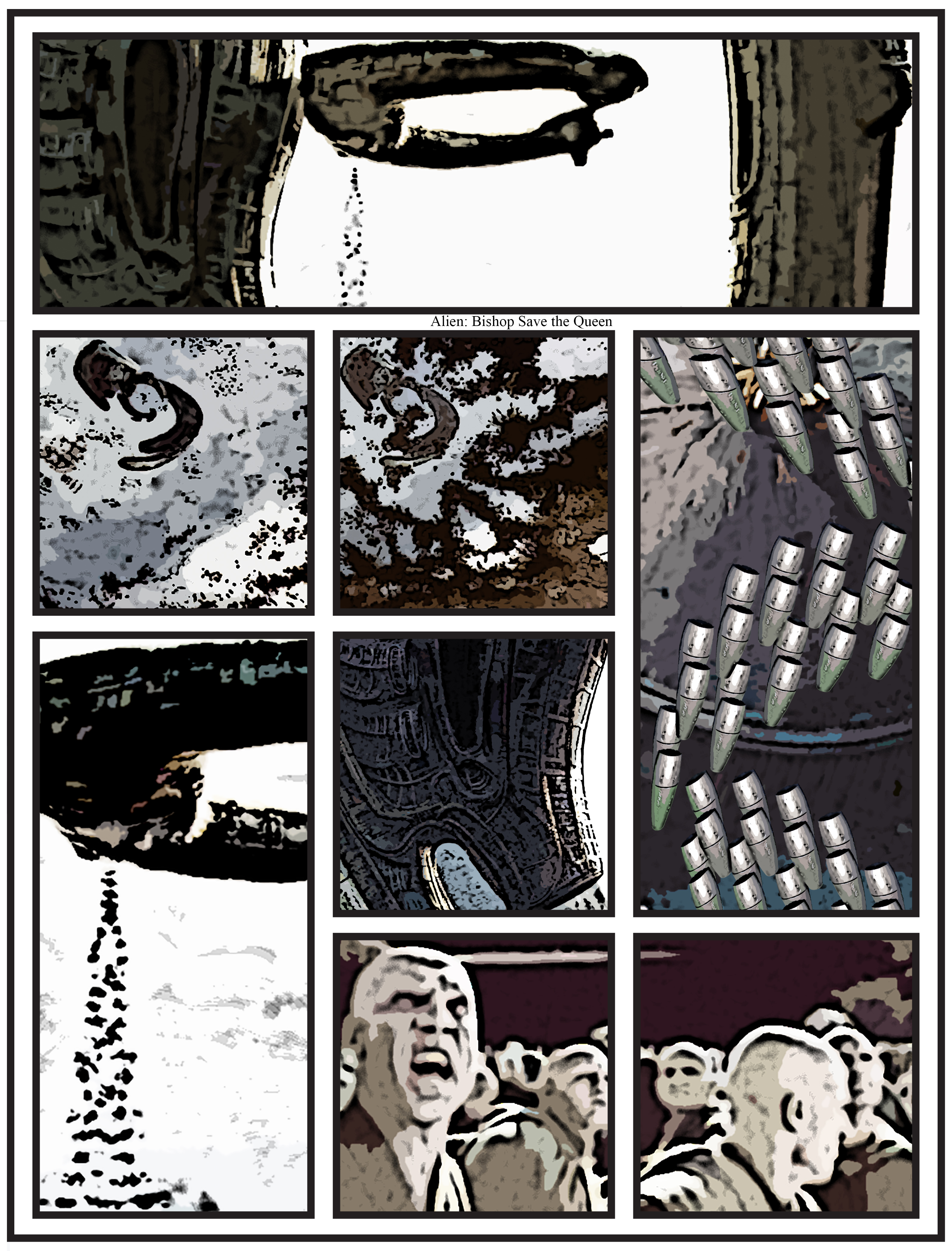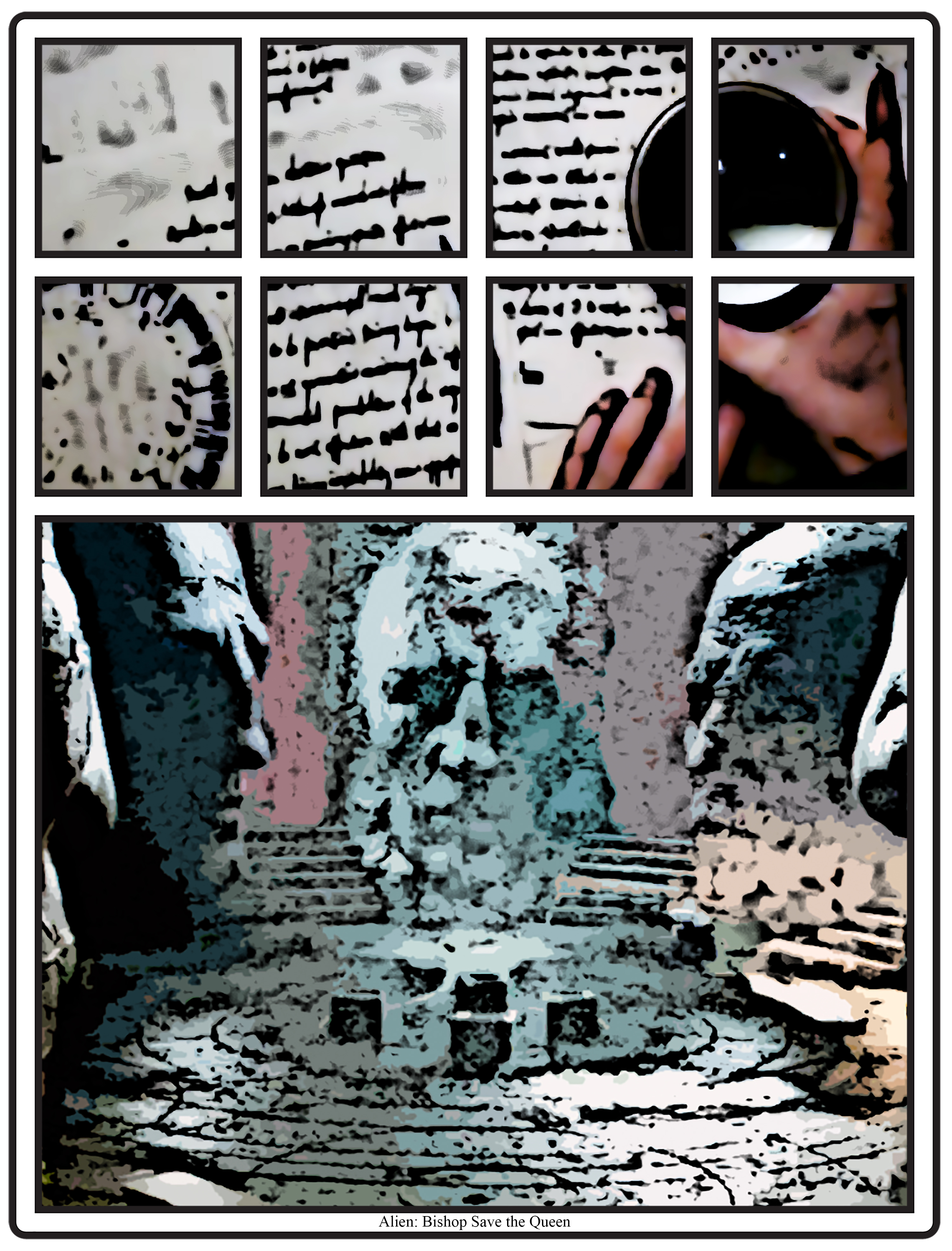 The latest movie poster art I completed for Alien: Bishop Save the Queen is seen below. This file was created in Photoshop shot with an iPhone camera. The title image is a still image from iMovie then changed through Photoshop filters.