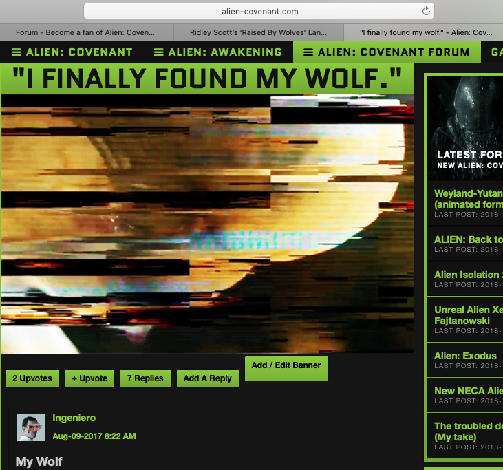 I wrote the above topic about the Prometheus mural and the flashed images in response to the David's Lab teaser and when David mentioned "I finally found my wolf."