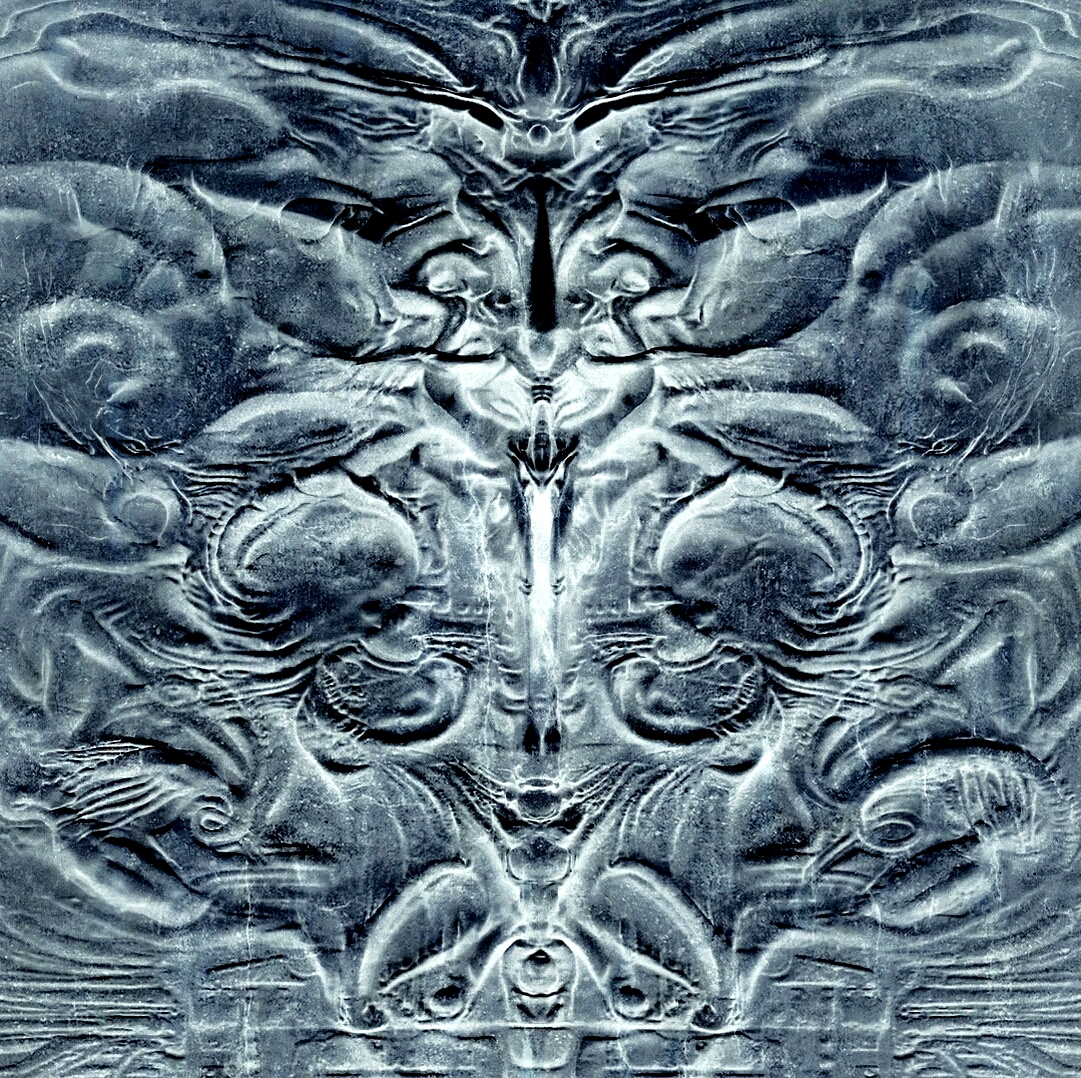 Speaking about the mural in Prometheus, in it's negative enhanced version the xenomorph vanishes completely, the result reminds me of H.R. Giger's Necronomicon: