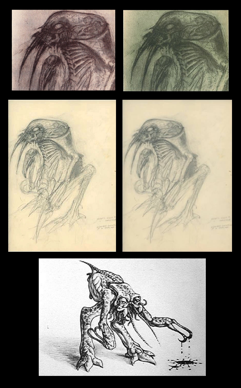 More Enhanced Images of Dan O'Bannon's Starbeast idea. We can see from the Full Image which i Enhanced a bit on the Left, that the Creature was similar to Ron Cobb’s Effort at the Bottom as far as its Anatomy to a degree.