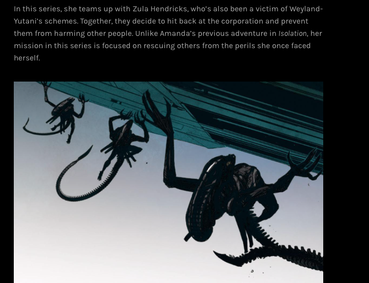 As much as a let-down as the prequels are I am glad that they are not connected to Ripley. Maybe they think that the movies did bad because of that but I think that it is one of their strengths. The universe is big so why must every movie, comic, and so on be about someone connected to her (not all but many of them)? Give me new and well done characters and avoid to throw her into everything, maybe someone tied to Vasques would work (don’t ask me how because I don’t know).