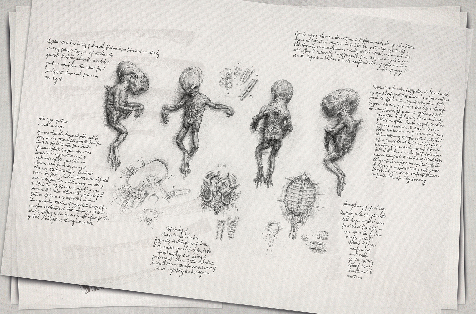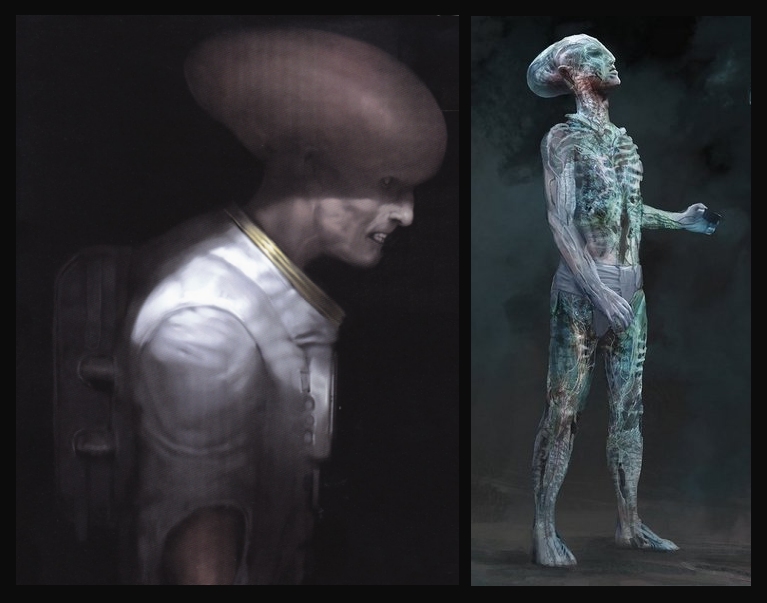 Maybe NOT as Elongated Head as these Concepts, but also maybe HIS so called Humanoids could have some kind of Hive Mind Communication or other Sensory Organs/Abilities like what appears to be WHAT he had achieved with Experiments on Engineer Babies/Embyro's