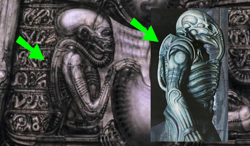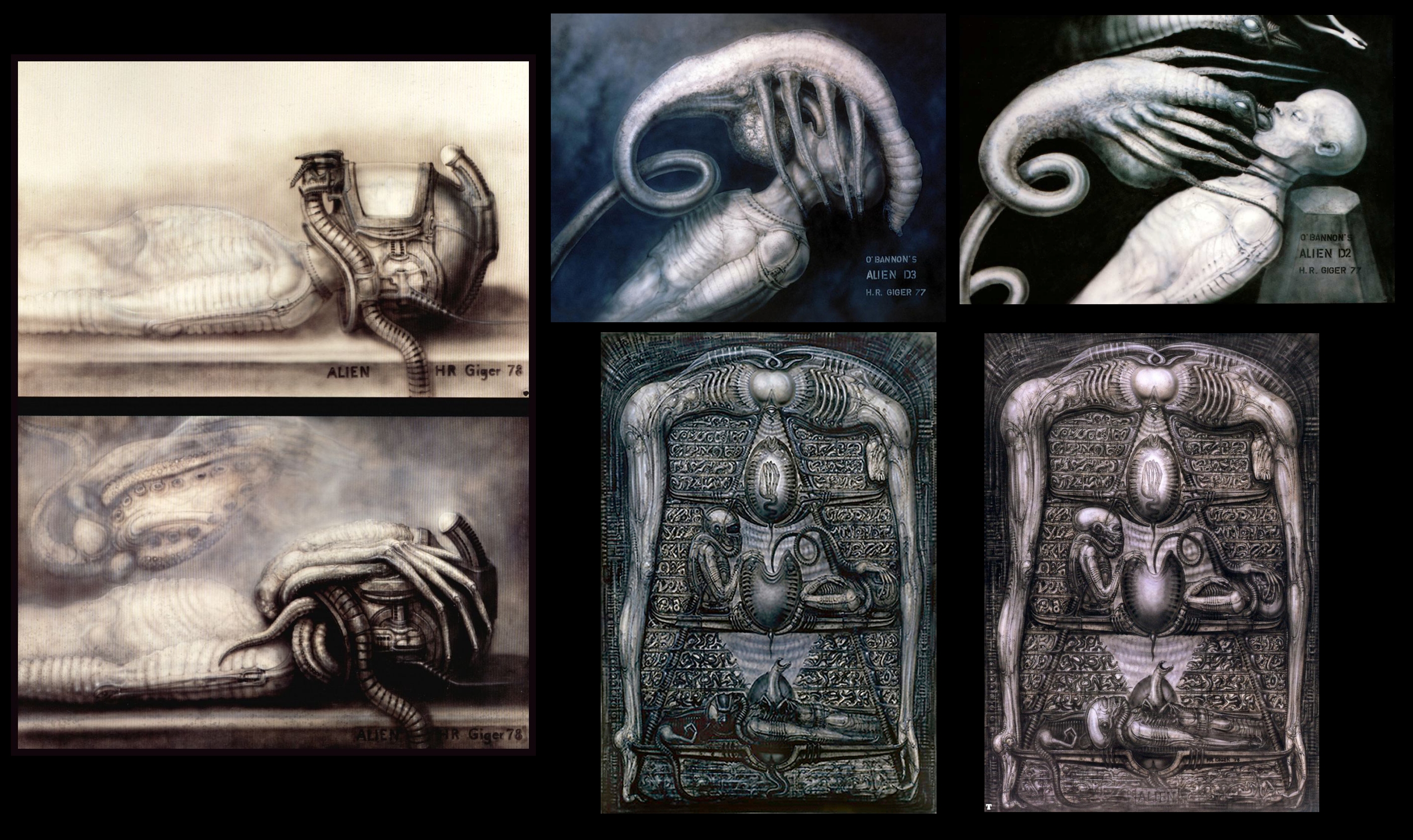 “These are the Concepts to the Face Huggers and Victims, Note also the Murals that HR Giger did”