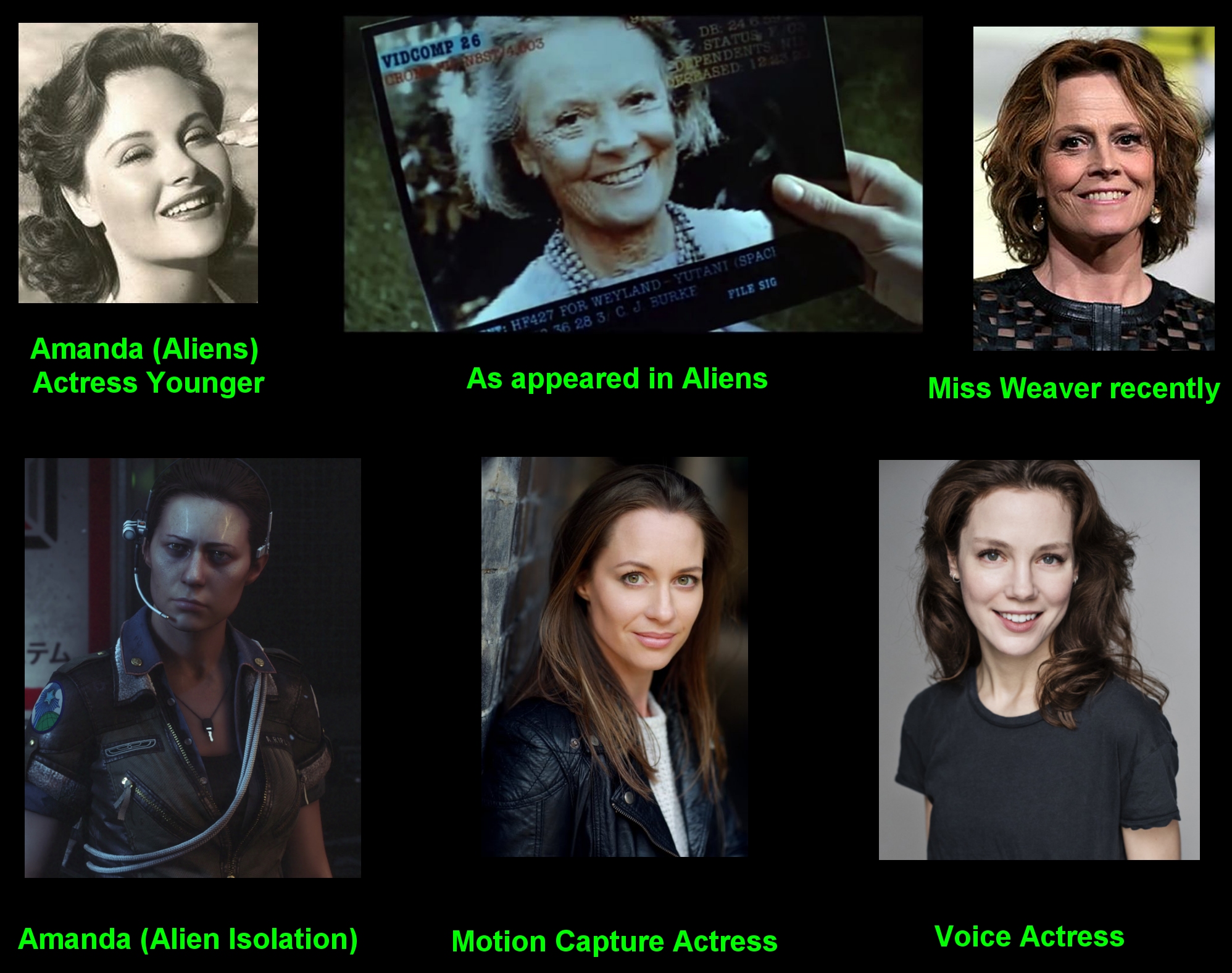 To play a Amanda Ripley in her 50's i think Miss Weaver could pull that off with not much CGI etc, to pull of a Amanda Ripley in her 60's would be Easy. But to play a Ellen Ripley in her early 30's would just not work really.