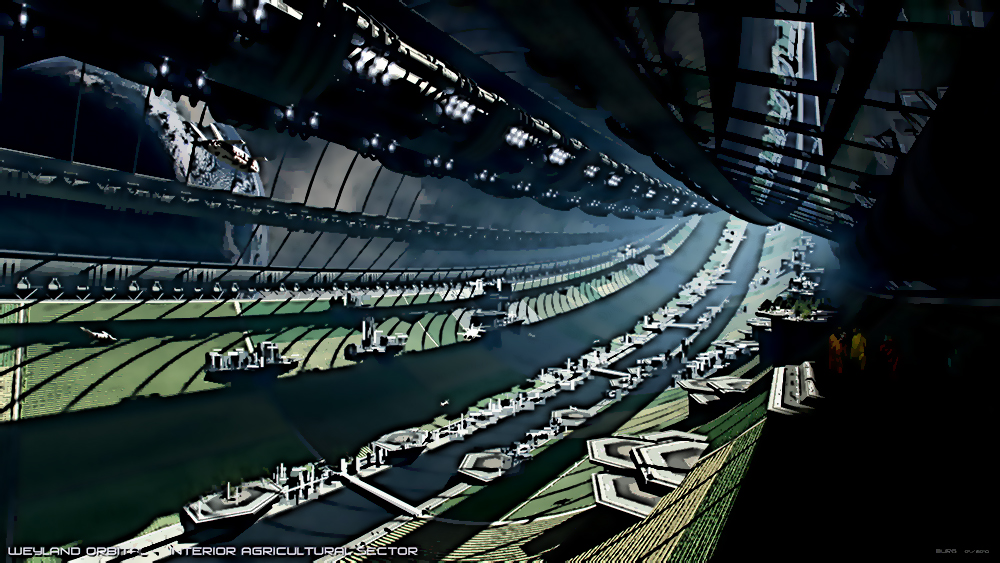 I think we missed out a little with the Steve Burg concepts (below filtered) left out of production in the film. I personally would have loved to seen more of Weyland Industries on Mars or in orbit over Earth in Prometheus.