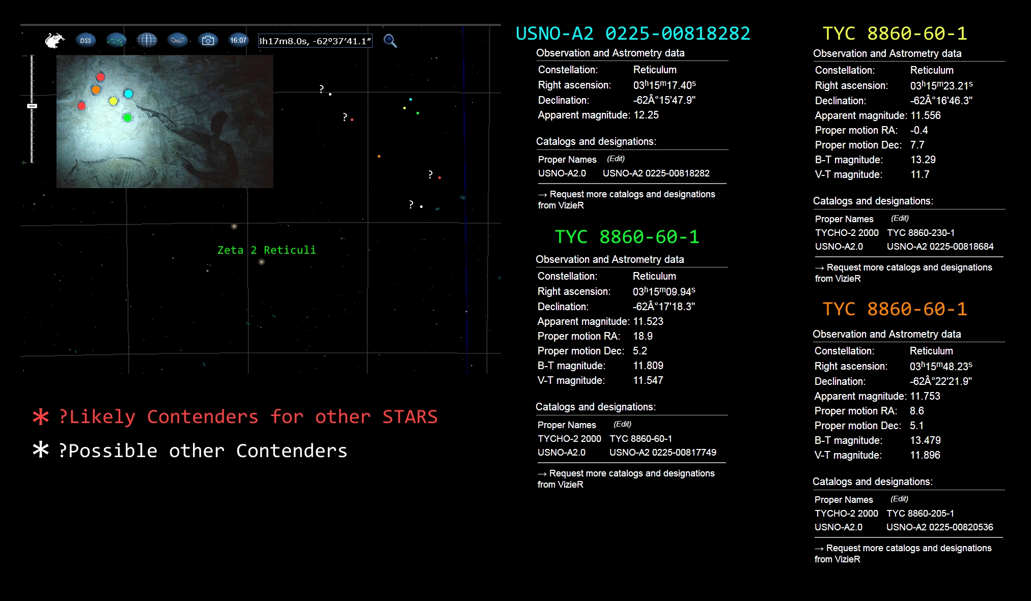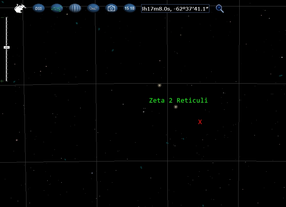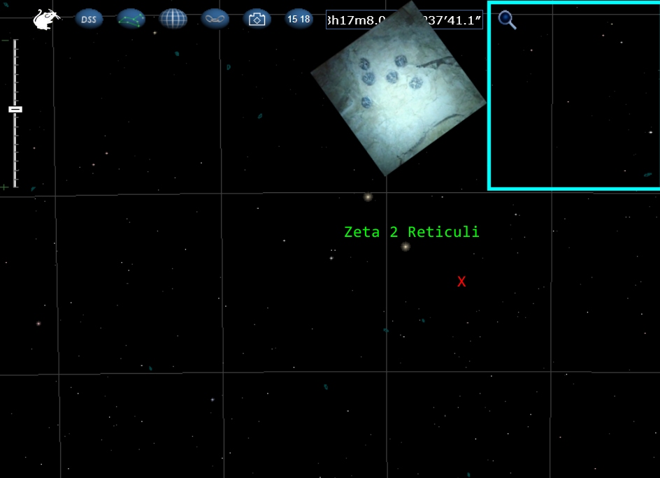 The Co-Ordinates are NOT where ZETA 2 is located in the SKY. While in RED i have marked out a Approximate Area where Holloway had pointed out. i have Marked in GREEN a More Accurate Location of where Zeta 2 Reticuli would be.