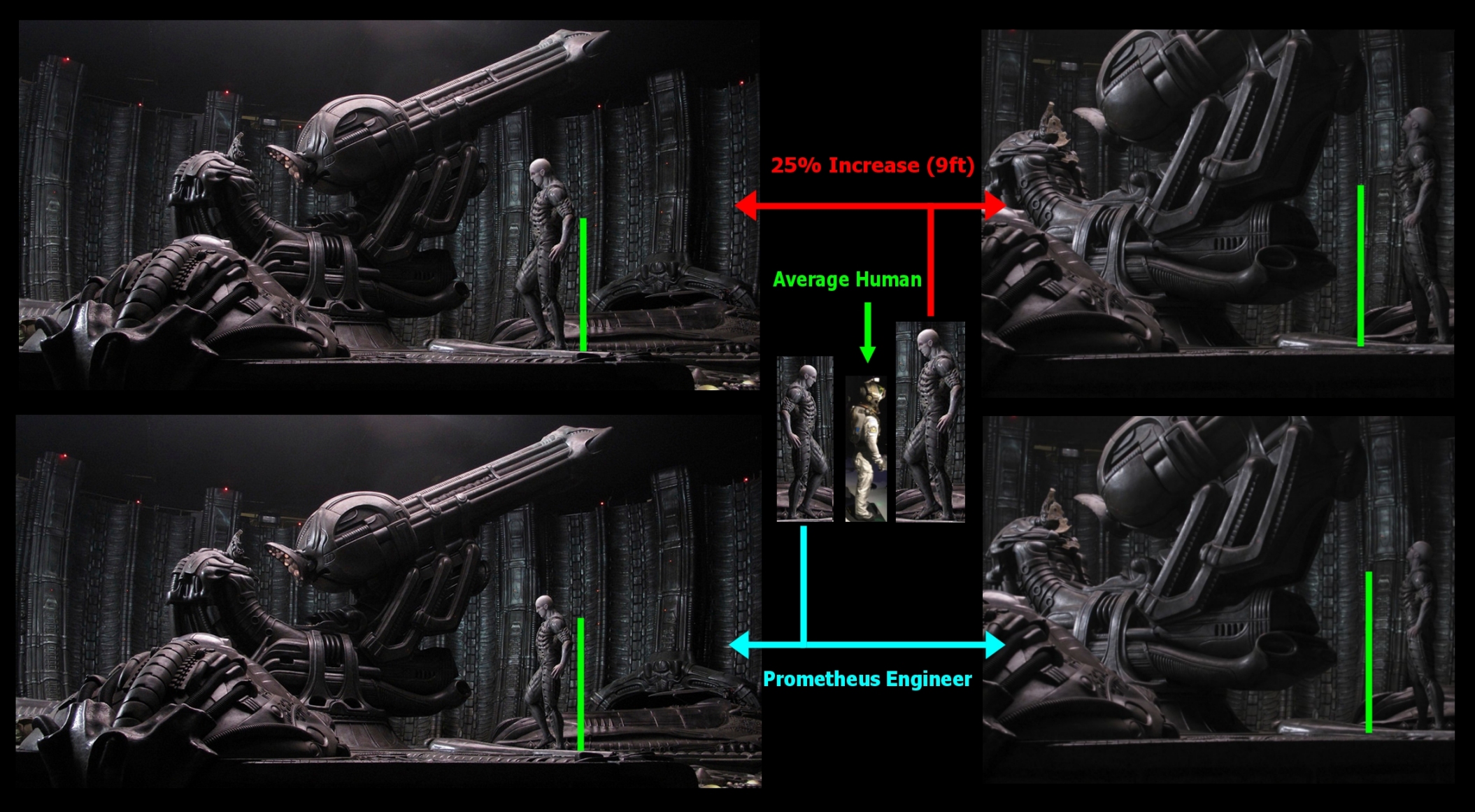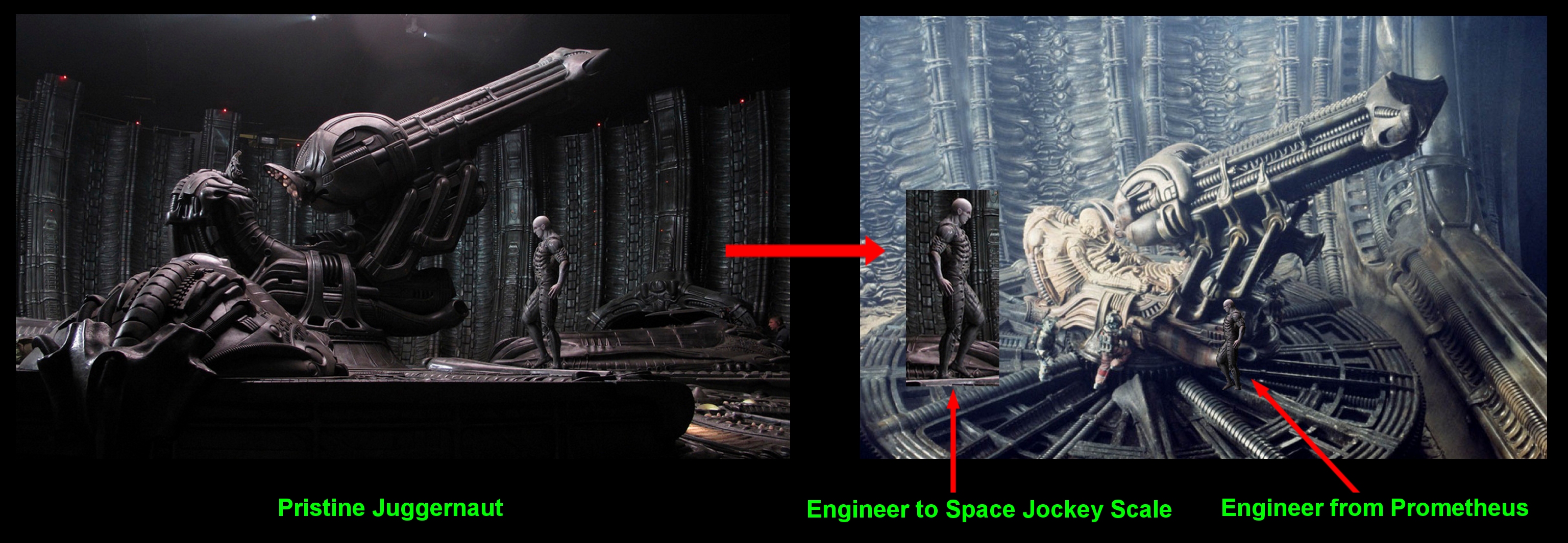 *The Engineer would be Smaller than the Space Jockey (using the Wider Shots) the Engineer would have to be as Big as the One i placed at the FAR Left of the One Image.