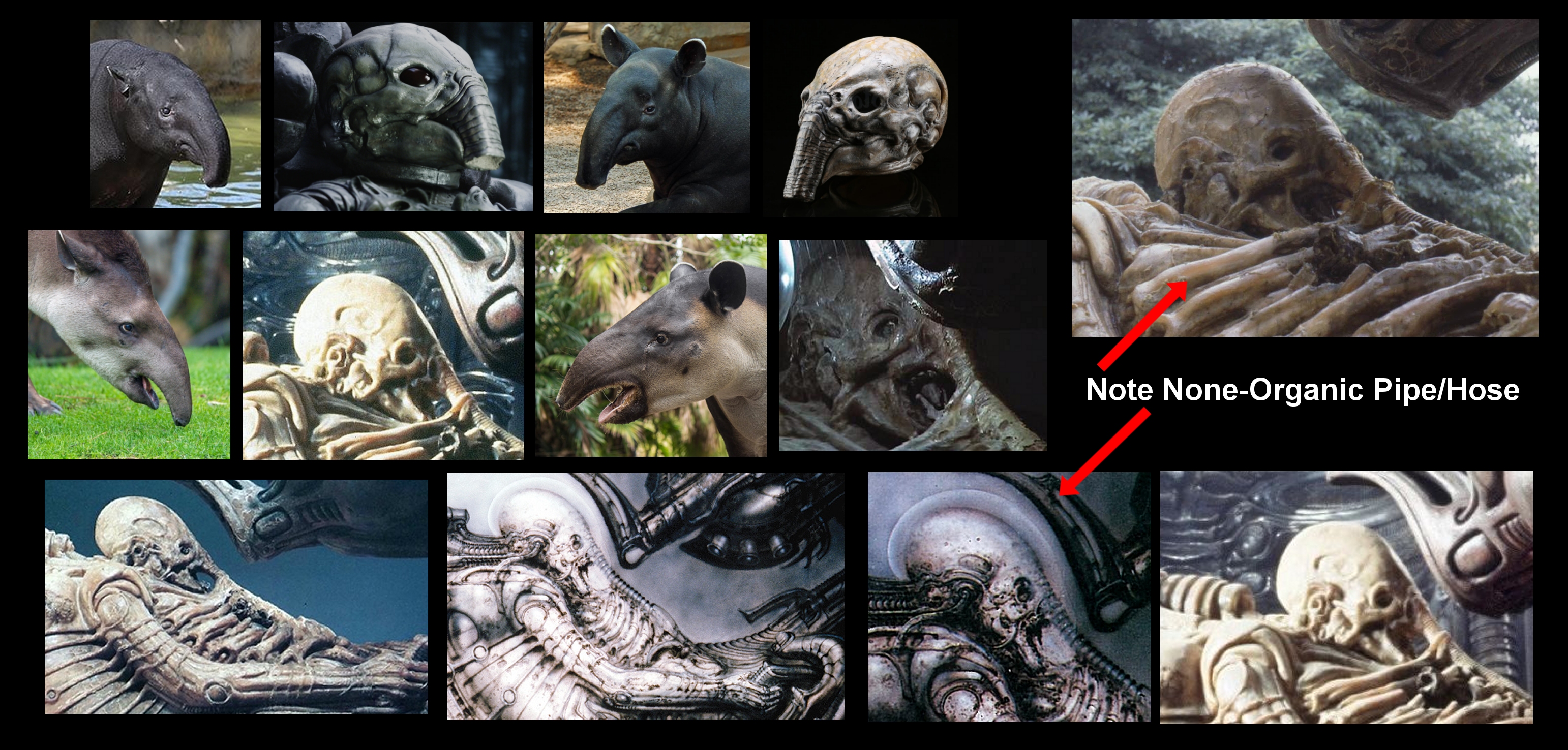 Some had compared the Space Jockey Helmet from Prometheus to being like a Tapir. A Tapir Skeleton would LACK the Hose just as Human Skeletons dont have a NOSE.