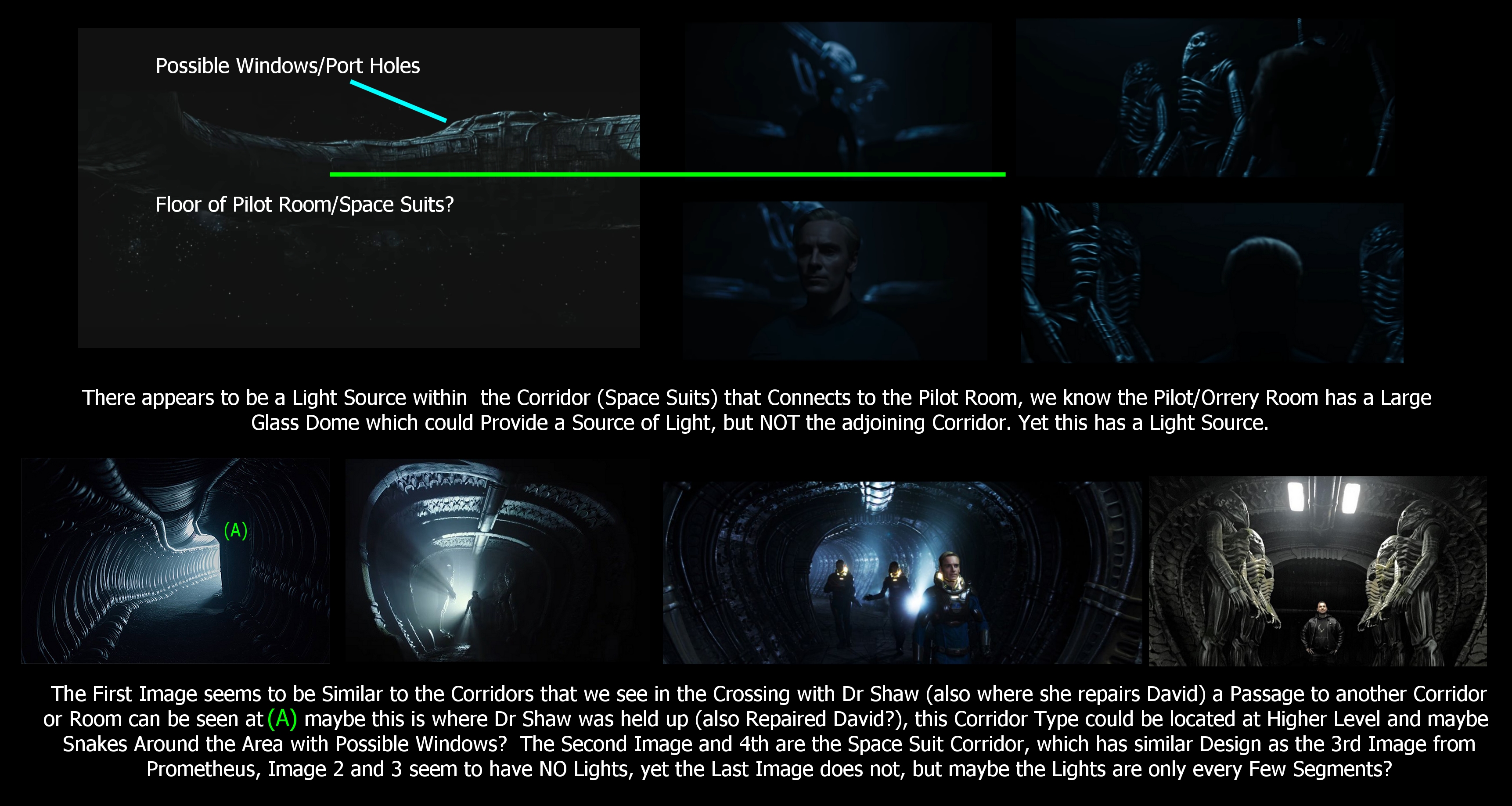 The above Image is to show that the Corridors where the Space Jockey Suits are, and other Corridors that Connect to the Pilot/Orrery Room have their OWN source of Light.