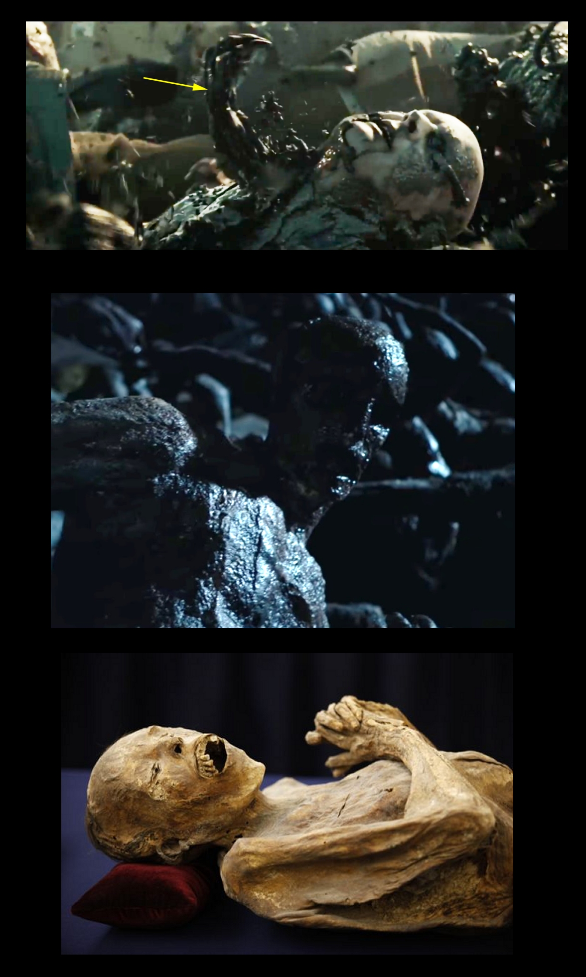 The Bodies However dont look much like Decomposed, they look more like Mummified... was this a Effect of the Black Goo? Does the Goo somehow make the Dead Remains Solidify in such a Manner?