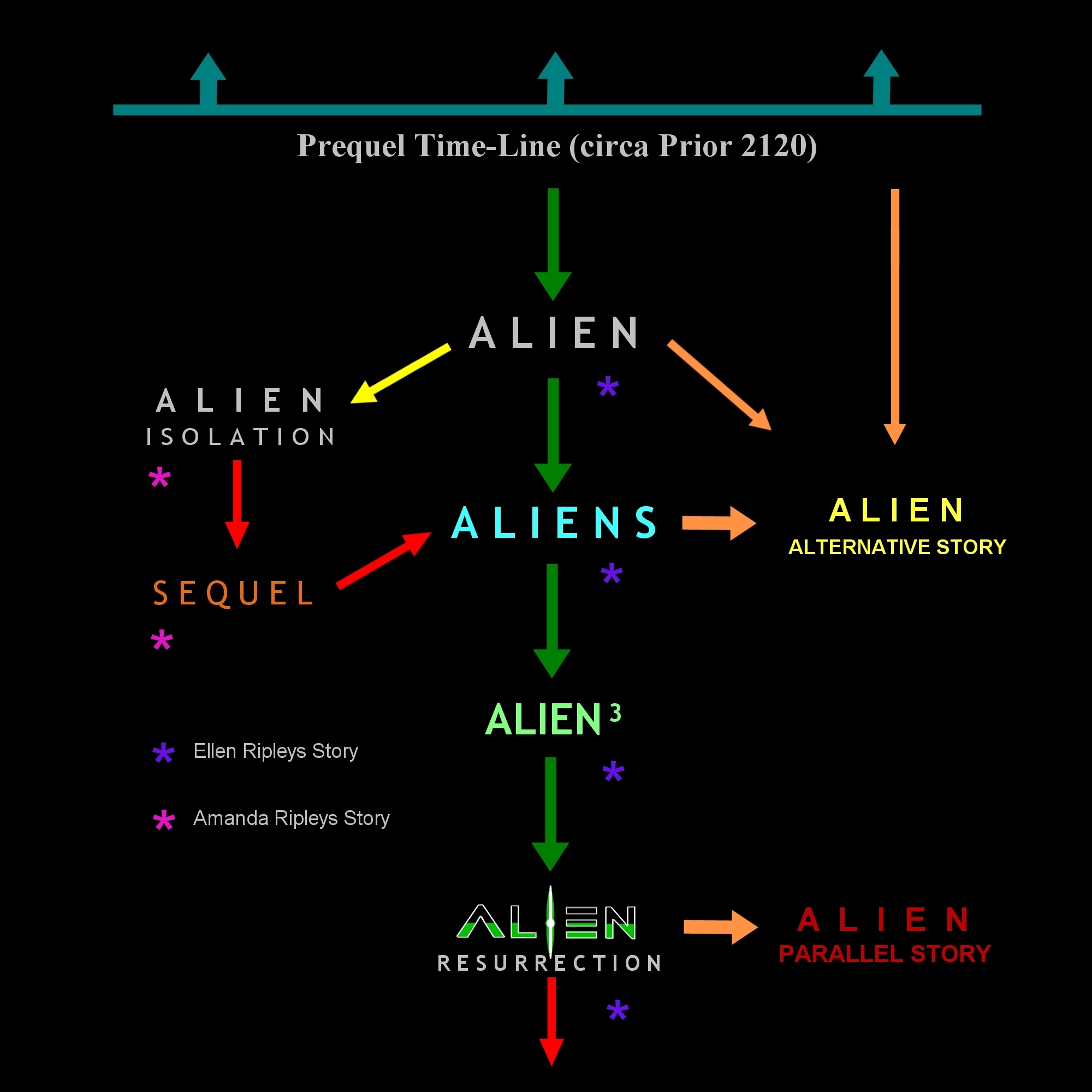 I like that diagram BigDave- and I would like to see it continue to the left- somewhere between Isolation and Aliens. I think the Amanda angle has wings and could attract younger folks as well as geezers with open minds like me. My second choice would be after Resurrection and that could easilly include the Company and/or the creature. Whatever the case, I would leave Ripley out of it unless there were some audio files or something. Ripley had her time just like I think David has had his.