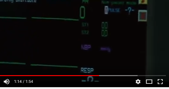 Yet, she is found caccooned and yelling- obviously breathing and therefore a heart beat (the monitor reads a systole and not that any leads are disconnected).